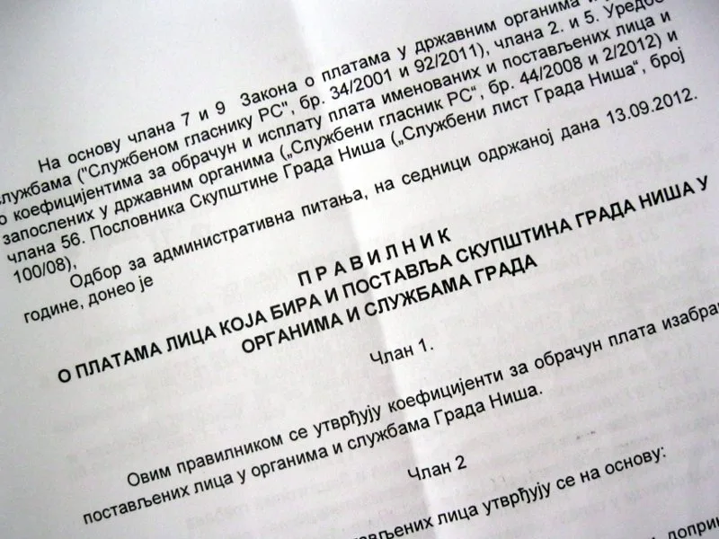 Odbor za administrativna pitanja niške Skupštine doneo je odluku da se funkcionerima ne uvećavaju koeficijenti kojima se povećavaju plate sve dok traje mandat ove Skupštine ili do donošenja zakona koji regulišu ovu oblast.