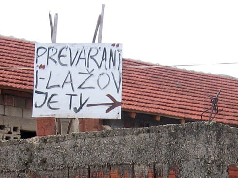 U selu Katun kod Vranja putnici namernici sa interesovanjem zastaju, kako bi pogledali neobičnu tablu na kojoj piše „Prevarant i lažov je tu“ i putokaz koji pokazuje na susednu kuću.