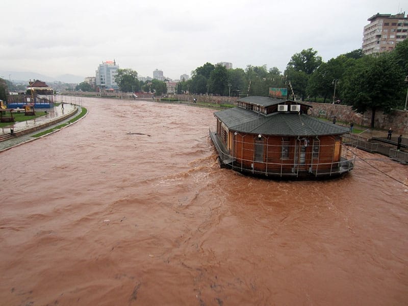 U centru grada talasi dolaze do prvog nivoa šetališta, a van tog dela korita voda izlazi samo uz splav „Porto belo“.