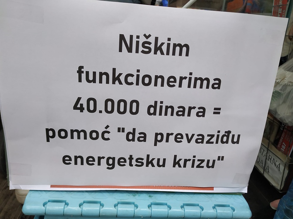 Podsetimo, skupštinski Odbor za administrativna pitanja doneo je rešenje o isplati 40.000 dinara svim funkcionerima na stalnom radu, radi prevazilaženja energetske krize u predstojećem periodu.