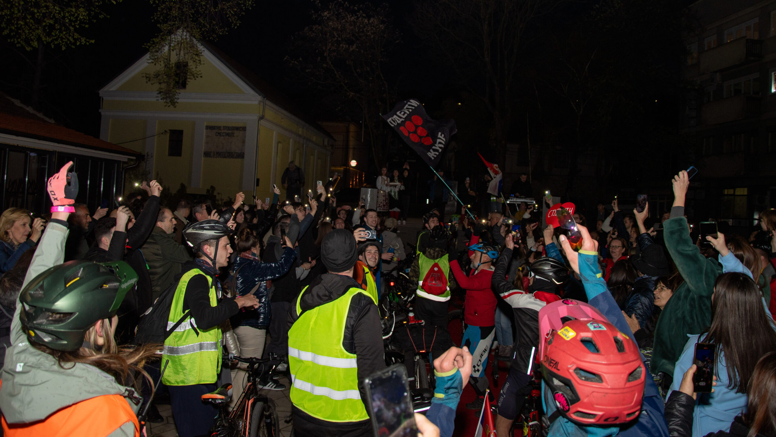 Nakon nekoliko kraćih pauza zbog grčeva u nogama, niški studenti koji su biciklama krenuli na protest u Novi Pazar nalaze se na oko 10 kilometara od Aleksandrovca gde će prenoćiti prve večeri.