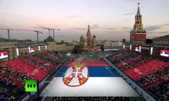 Hiljade Moskovljana je na Crvenom Trgu aplauzima i skandiranjem pozdravilo niški Vojni orkestar na Međunarodnom festivalu vojnih orkestara „Spaskaja bašnja“.