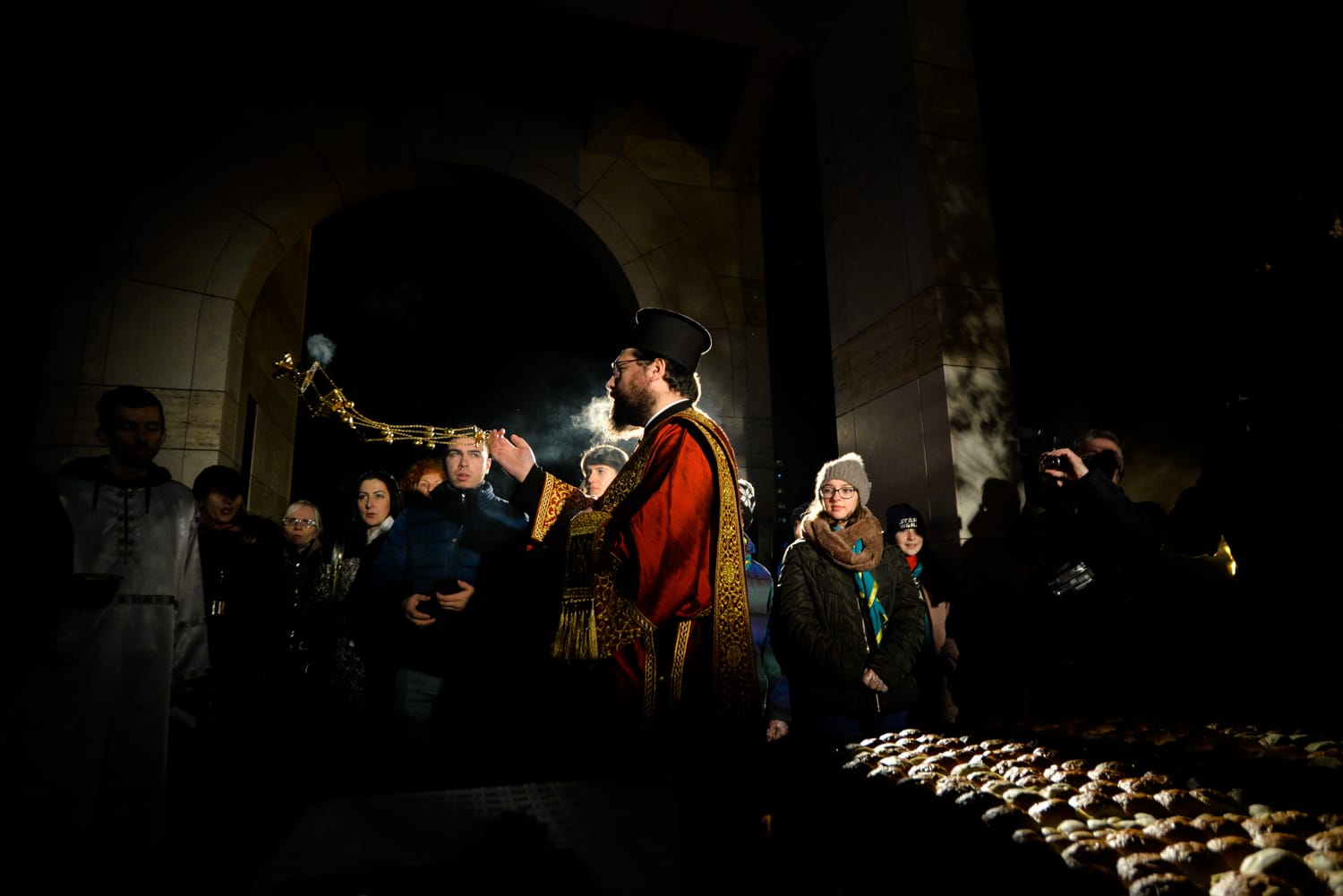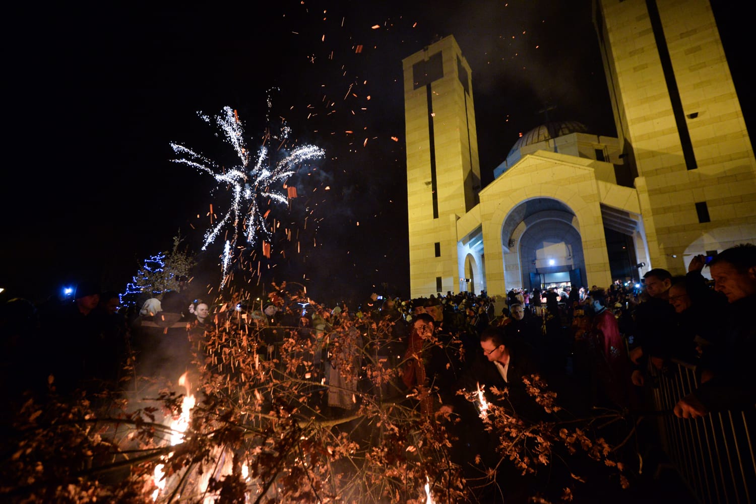 Božićno veče u jednom od niških parkova praćeno je i prigodnim vatrometom, a pre posluženja i paljenja badnjaka, Vladika niški Arsenije je sa sveštenstvom Eparhije niške služio molitvu.