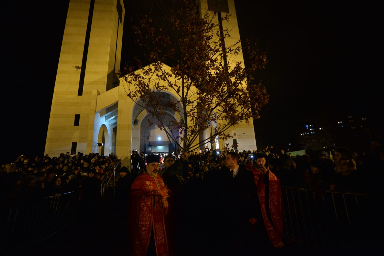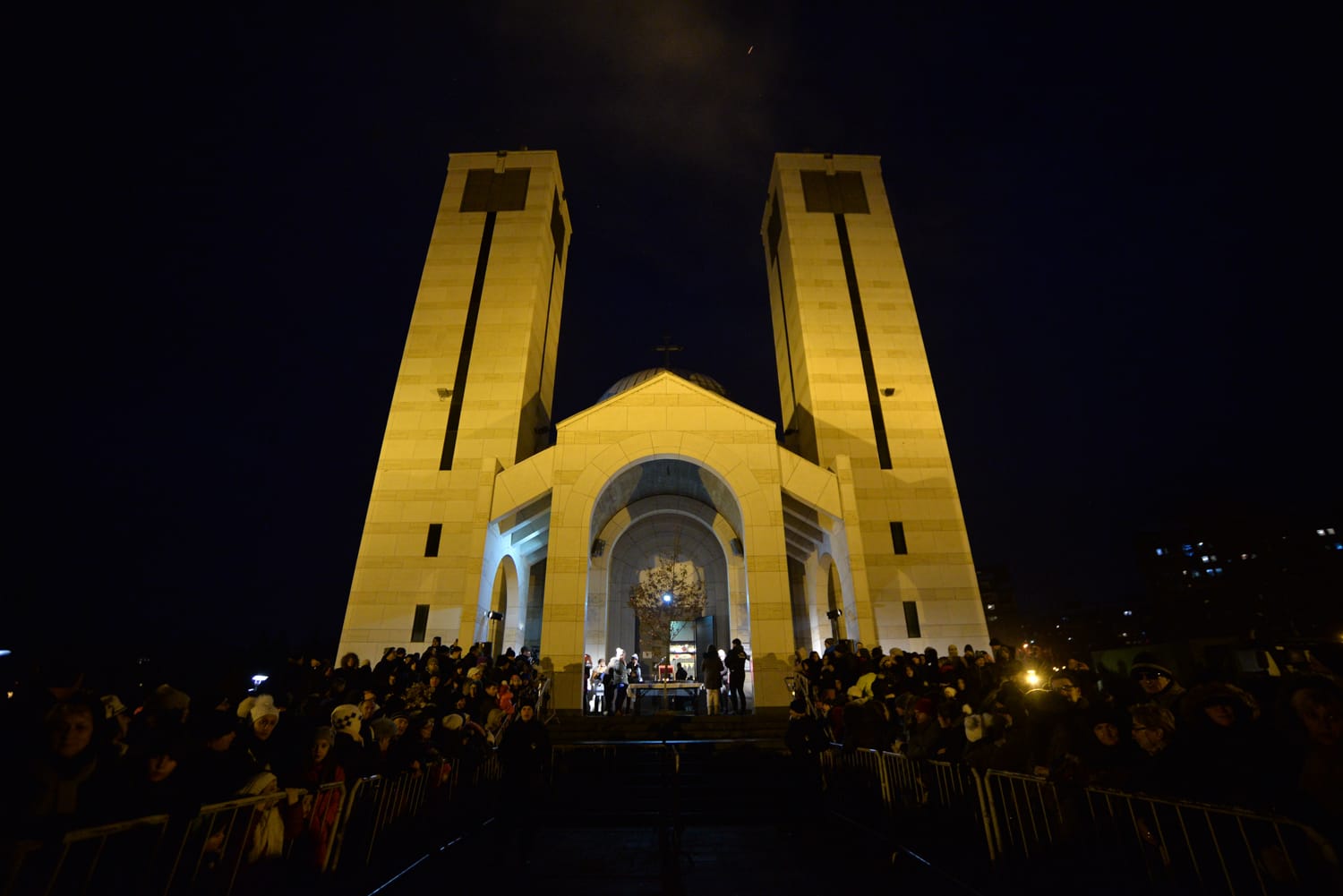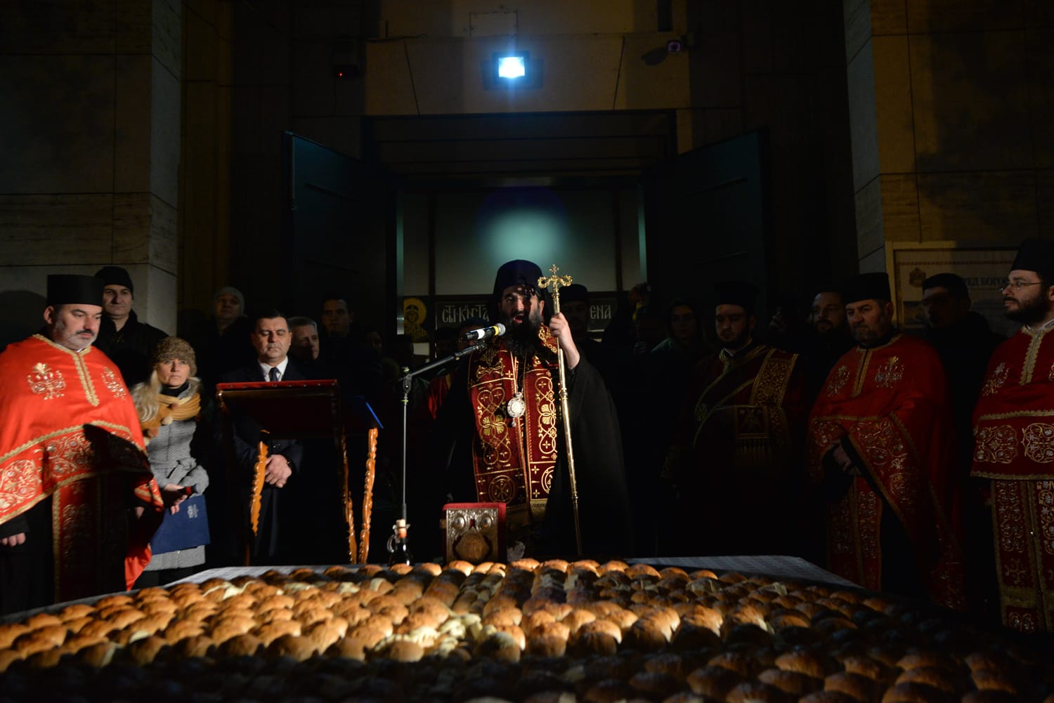 Nekoliko stotina ljudi je i ovo Badnje veče provelo u Svetosavskom parku, gde su nakon molitve građani ispred crkve palili badnjake za sreću, a potom lomili česnicu. U božićnoj pogači prečnika 2 m, koja je bila teška oko 100 kg, kako kažu u Opštini Medijana, bila su skrivena 3 dukata.
