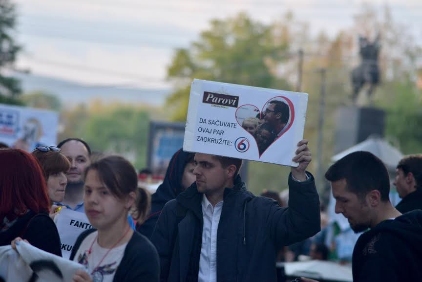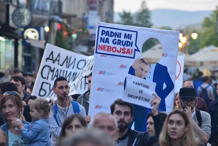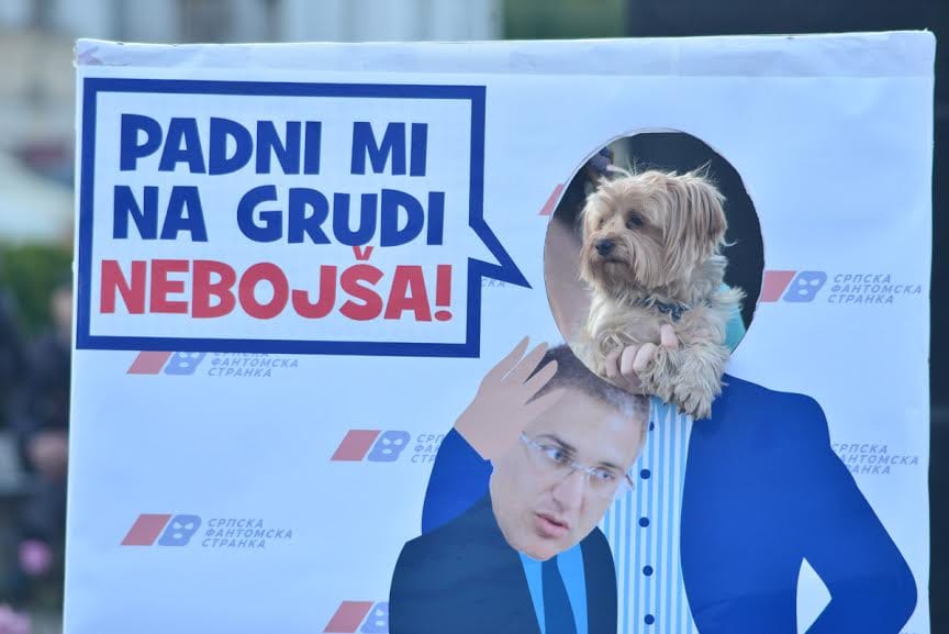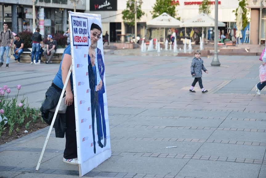 Nišlije su na večerašnjem protestu postavile satirični pano na kome su građani mogli da se fotografišu sa ministrom policije Nebojšom Stefanovićem na ramenu, aludirajući na prisni pozdrav sa premijerom i budućim predsenikom Aleksandrom Vučićem. Na panou je pisalo „Padni mi na grudi Nebojša“, a na mestu premijera našla su se lica demonstranata.