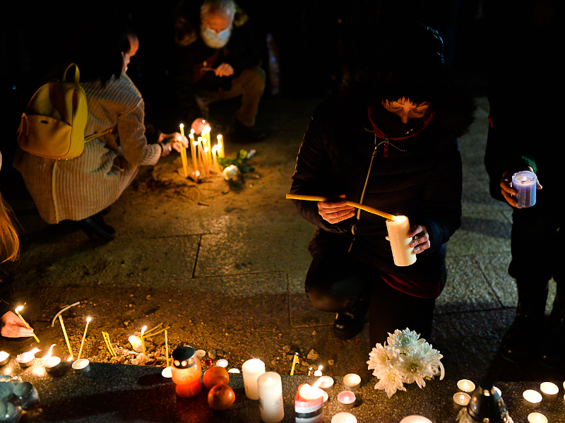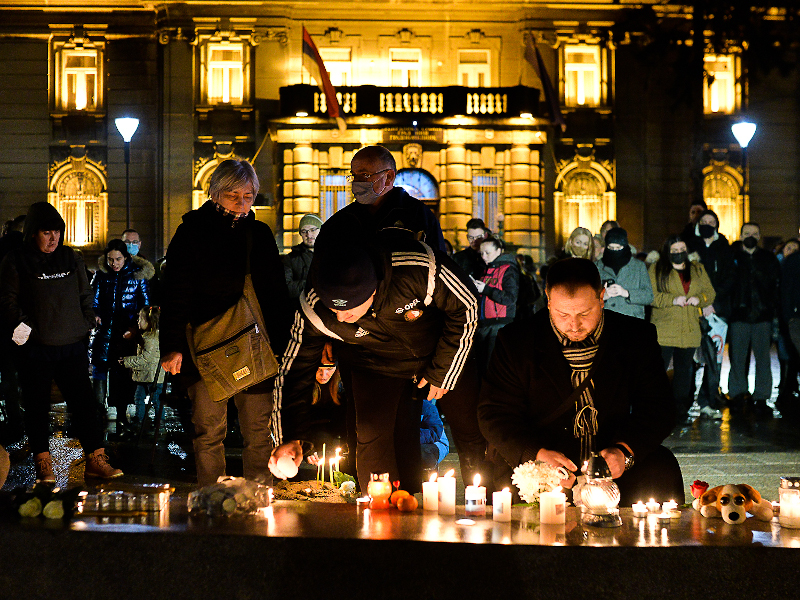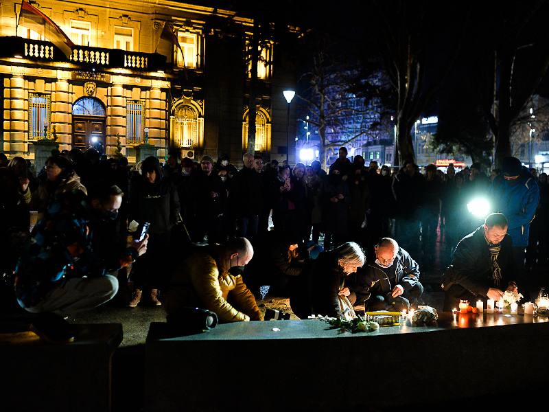 Ispred Gradske kuće u Nišu okupili su se građani da odaju poštu Đorđu Balaševiću koji je preminuo juče od posledica virusa korona.