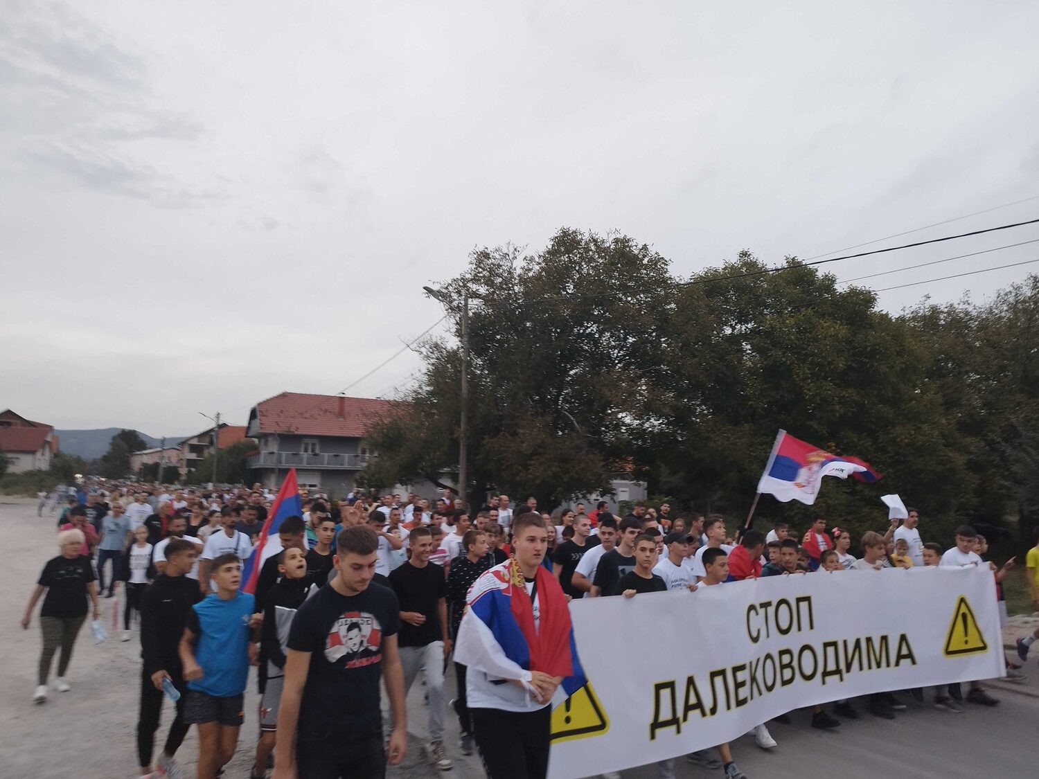 Tokom protestne šetnje su uzvikivali „Stop, stop dalekovod“ i „Ne damo Brzi Brod“, a protest je obeležio i veliki broj zastava Republike Srbije.