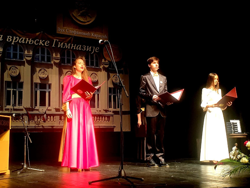 Akademijom “Velikani govore” na kojoj su nastupili operski pevač Oliver Njego, vokalni solista Branimir Stošić u učenici Gimnazije “Bora Stanković”, u vranjskom Pozorištu je obeležena 140. godišnjica te škole. Na svečanosti su uručene i plakete i zahvalnice pojedincima i kolektivima.