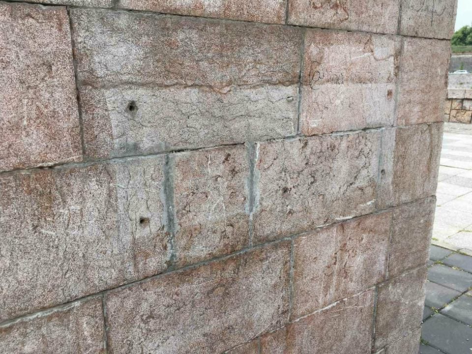 Ploče na pijedestalu na kojima je pisalo “Za slobodu, oslobođeni”, kao i brojke ispod krsta na prednjoj strani spomenika koje su označavale 17 vekova Hrišćanstva “313-2013” sklonjene su, dok je iznad krsta napisano “Gnusno!”.