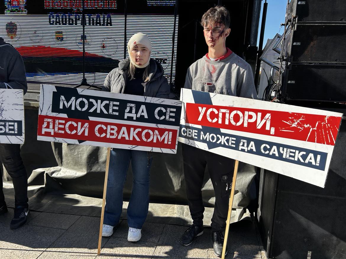 Na Karavanu bezbednosti prisustvovali su i niški srednjoškolci koji su izveli performans i pokazali prisutnima kako izgledaju žrtve saobraćajnih nezgoda i pokazali transpente poput “Ulica nije trkačka staza”, “Bezbednost na prvom mestu”, “Uspori”, “Vozi odmoran”, ali i “Kad pijem ne vozim”, “Pazi druge, misli na sebe”.