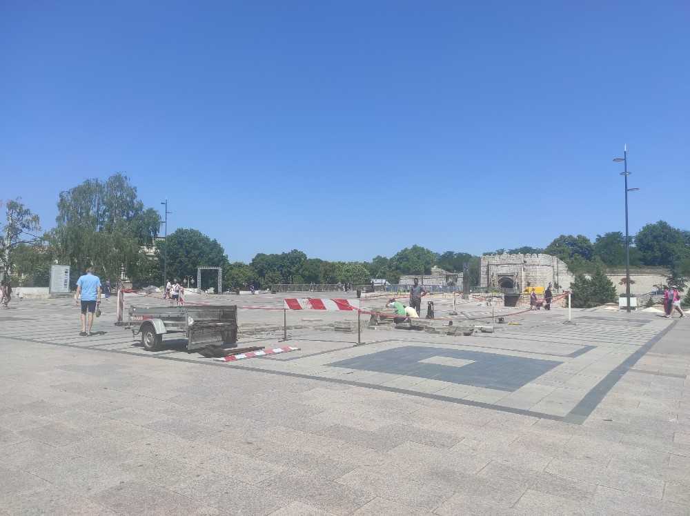 Trg liči na beskrajni pločnik bez hladovinu. Al dobar za sns mitinge. A mi sto će pocrcamo, koji tu idemo – nema veze