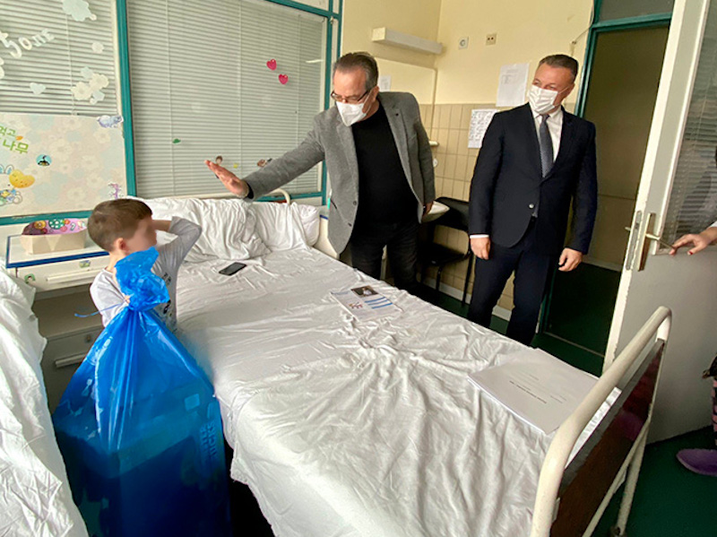 Iako zbog epidemiološke situacije posete klinikama niškog Univerzitetskog centra nisu dozvoljene, to pravilo nije važilo za predsednika Skupštine grada Bobana Džunića pa je on lično, u društvu direktora UKC-a Zorana Perišića, na Božić dostavio paketiće mališanima na dečijim klinikama.