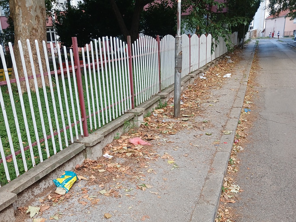 Park u naselju Branko Bjegović, prekoputa ambulante, javljaju građani, pun je smeća, iako se tu deca često igraju. Slično je na trotoaru pored Gerontološkog centra, u Ulici Vojislava Miloševića.