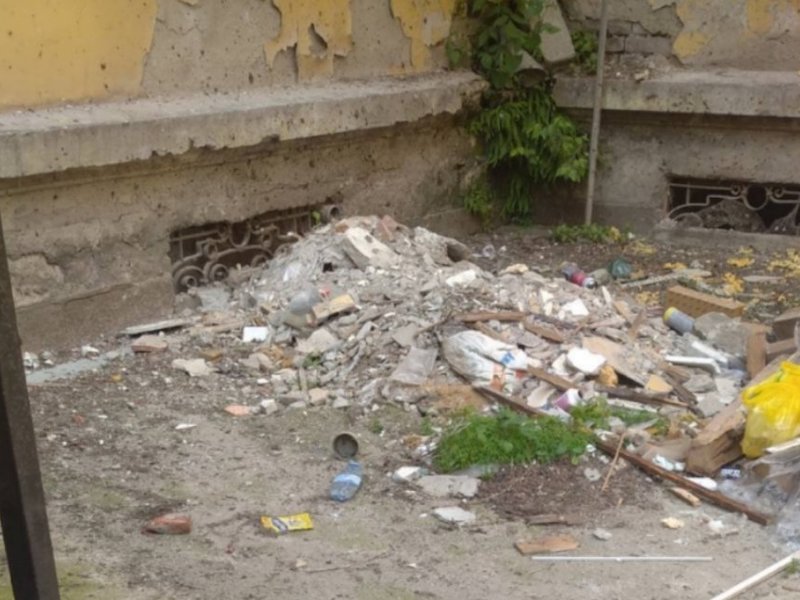 Lom i otpad u i oko zgrade Gradske uprave u Prokuplju; Foto: Urbana gerila Prokuplje