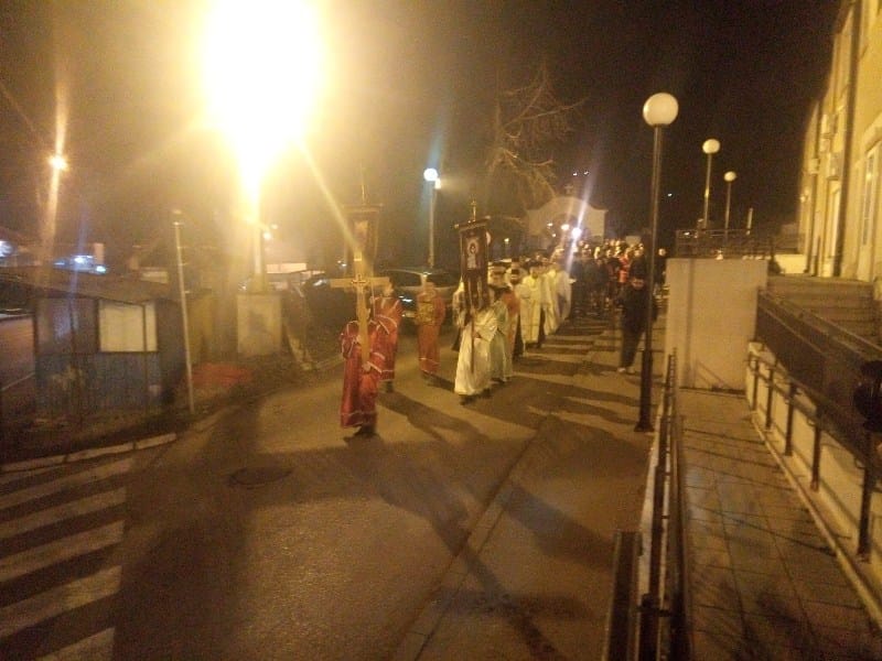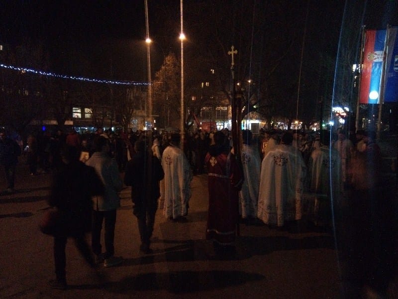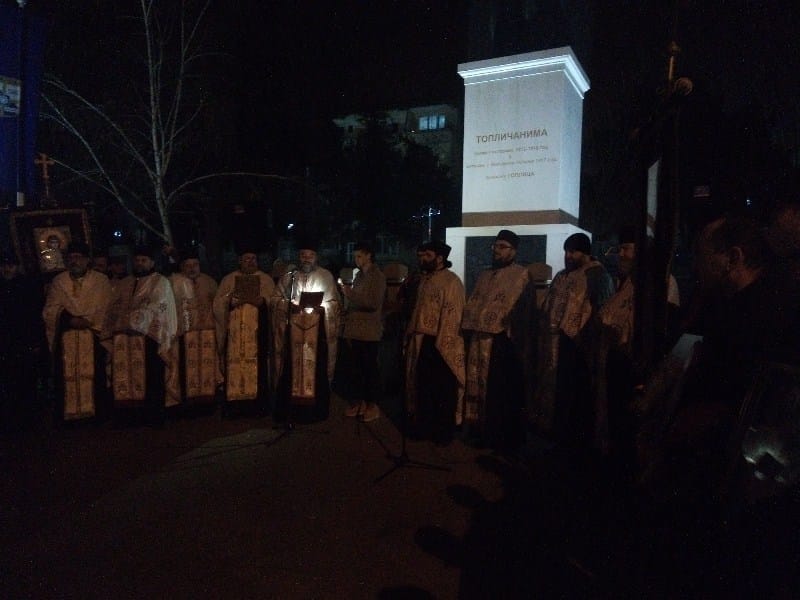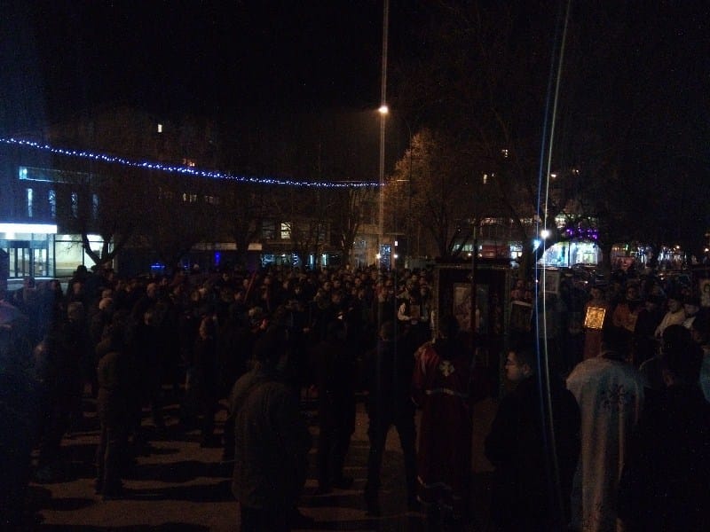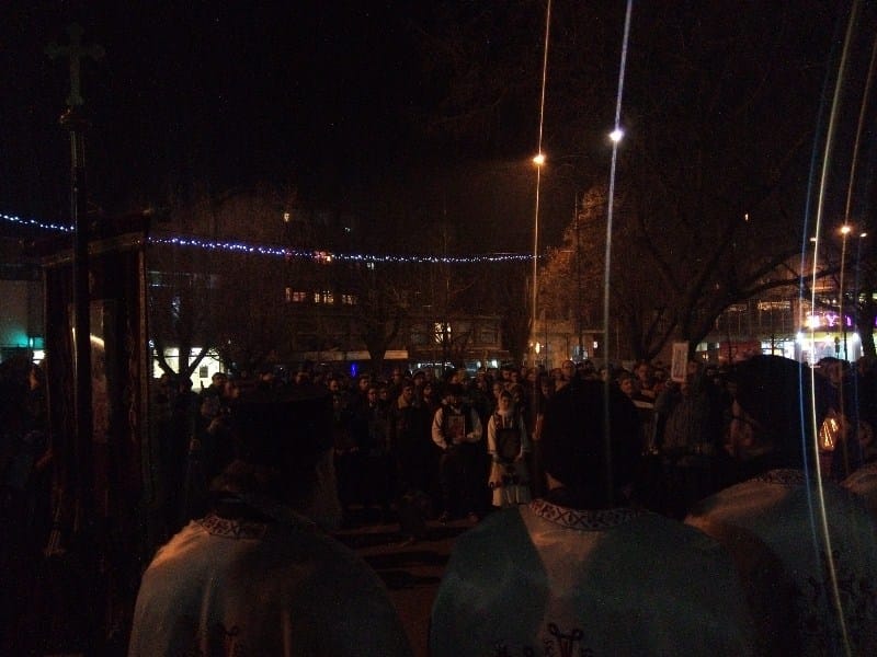 Okupljeni građani i vernici su u miru i tišini, pojedini noseći pravoslavne ikone, nakon završenog molebana i predvođeni crkvenim velikodostojnicima, stigli do mesta u centru grada, kod spomenika topličkim junacima, gde je sveštenik Slobodan pročitao proglas kojim se prokupačka crkva nedvosmisleno stavlja i moli za spas i očuvanje srpstva i jedinstva u Crnoj Gori.