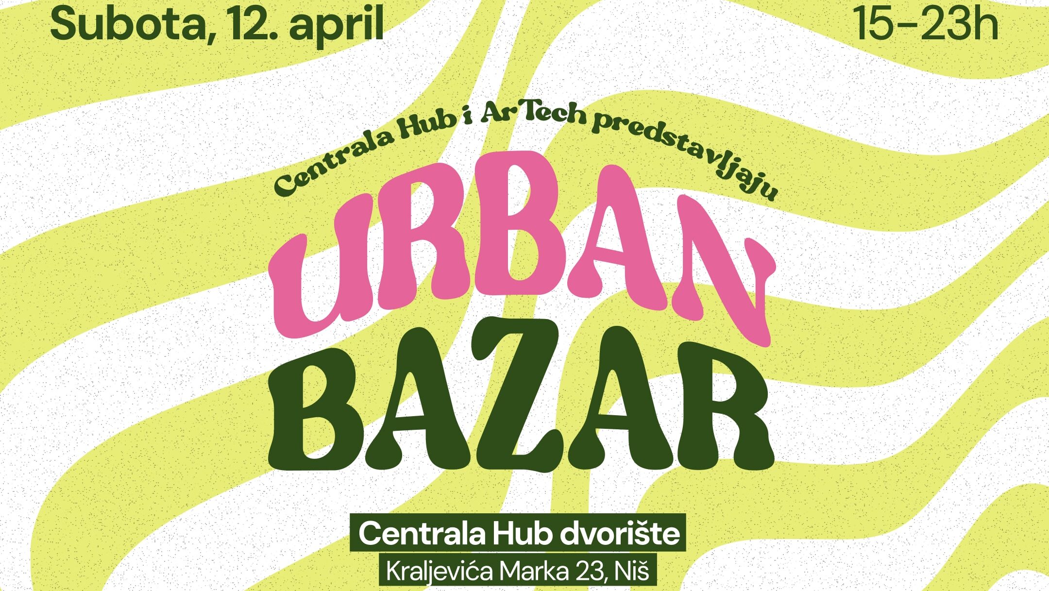 Nakon uspešnog oktobarskog izdanja, Urban bazar ponovo se održava 12. aprila. Događaj se organizuje s ciljem promocije lokalnih umetnika, zanatlija i malih proizvođača, a posetiocima pruža priliku da uživaju u autentičnom spoju umetnosti, muzike, hrane, pića, kupovine i zabave.