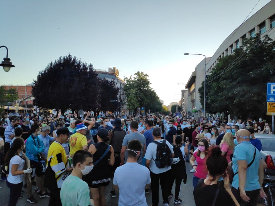 21:22 – Većina građana krenula je ka Crvenom pevcu, ali je nepoznato da li će odatle ići ka prostorijama SNS-a ili dalje Bulevarom Zorana Đinđića, ka Kliničkom centru. Jedna grupa ostala je kod Suda i optužuju ostale da su otišli da provociraju policiju.
