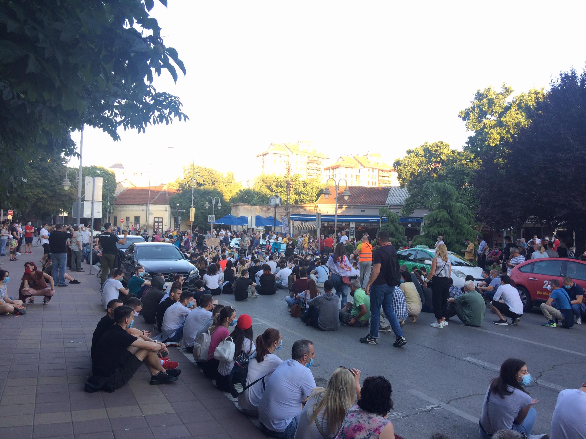 19:55 – Na kratko je, kažu novinari Južnih vesti, došlo do rasprave između demonstranata. Dok su jedni želeli da ustanu, drugi građani, uglavnom mlađi, počeli su da im dobacuju „sedi dole!“.