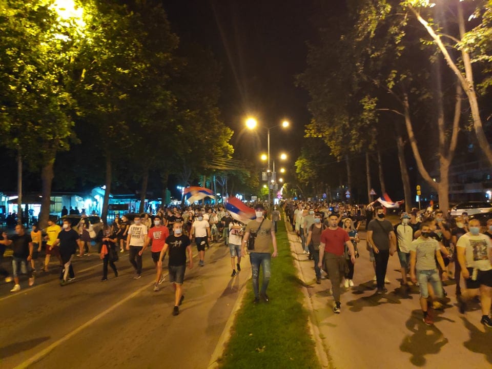 20:33 – Okupljeni sa Trga krenuli ka Voždovoj, kreću se ka Sudu.