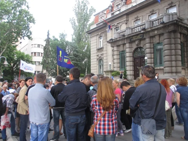 na ulicu smo izasli da branimo svou profesiju.ne mozemo vise da trpimo joniceva ponizavanja.dok je pravio dugove sve je bilo ok.sad kad doslo vreme da se plati krivi radnici.dosta vise.JONICU NAPOLJE