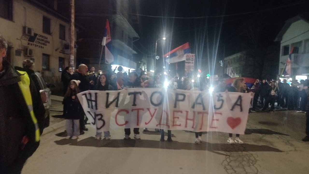 Po prvi put, protestna šetnja organizovana je u Žitorađi, opštini poznatoj kao jako uporište SNS-a, gde su građani sinoć izrazili nezadovoljstvo i solidarnost sa studentima i nastradalima u Novom Sadu. Osim u Žitorađi, protesti su održani i u Kuršumliji i Prokuplju, gde se protestna šetnja održava već jedanaest dana zaredom.