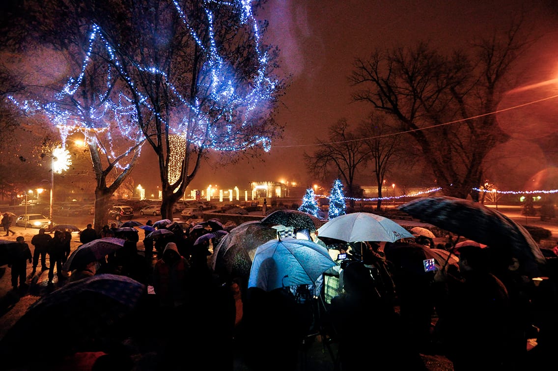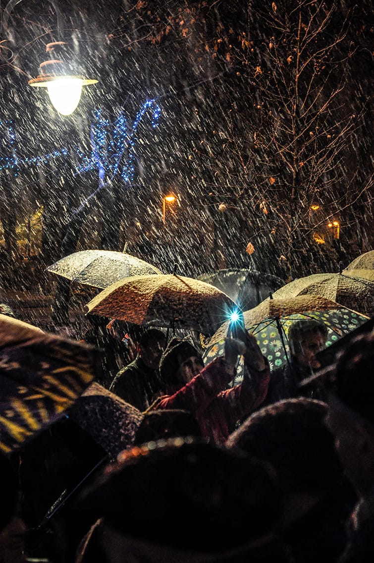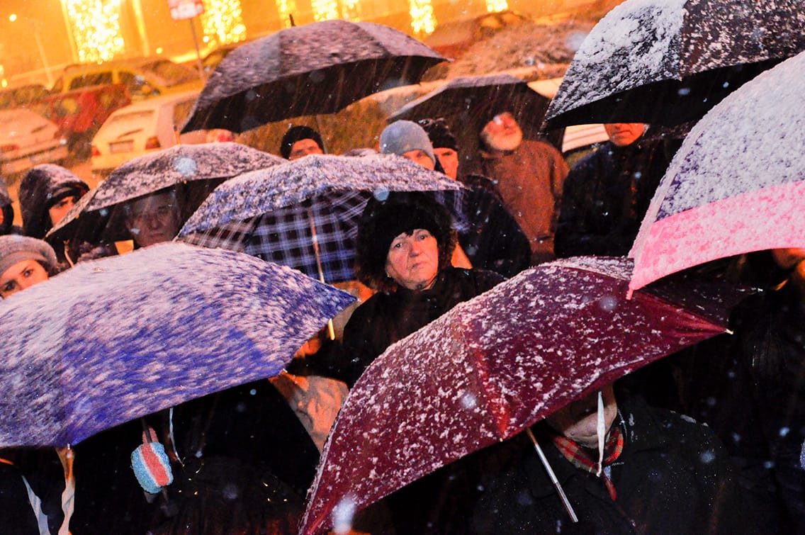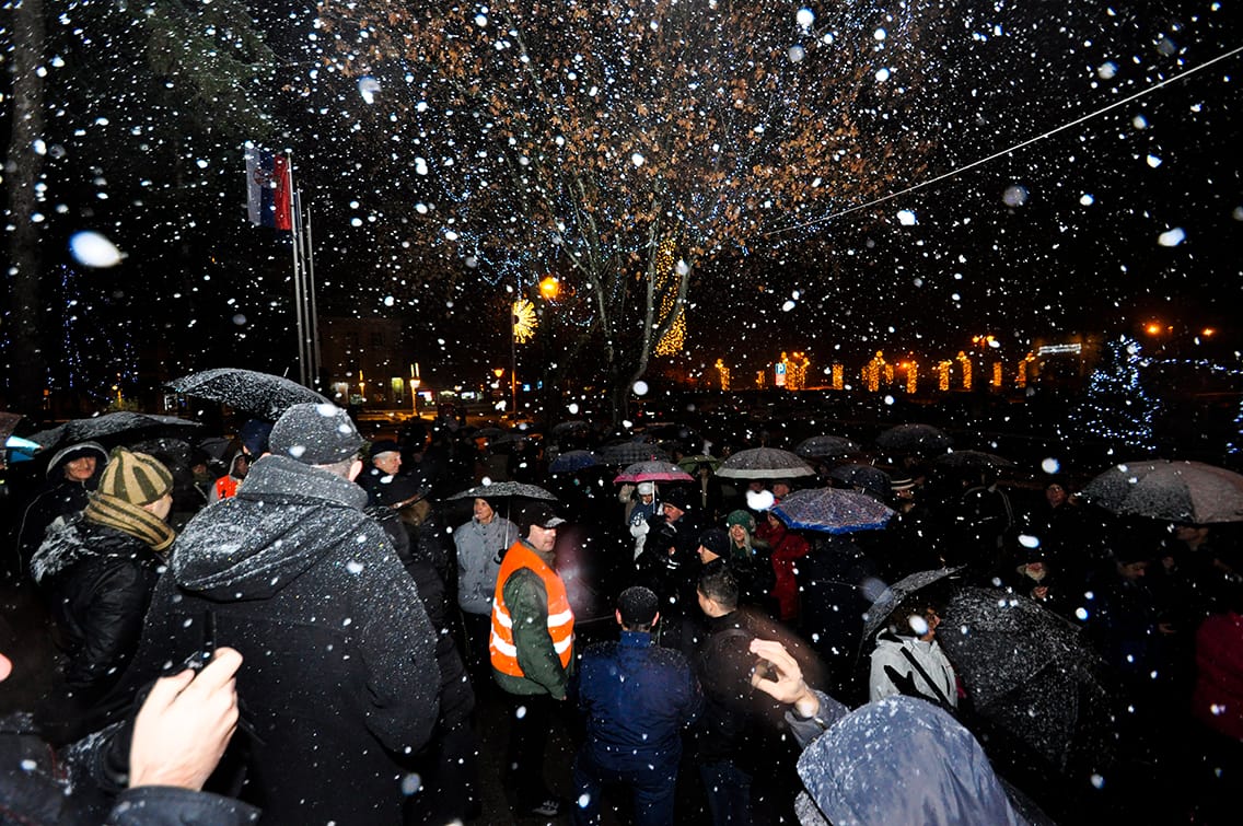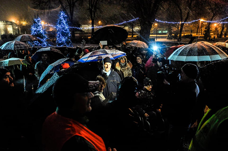 Nekoliko stotina građana uprkos snegu pozvalo je kompletno gradsko rukovodstvo da odstupi i, kako kažu, “tako oslobode grad okova neodgovorne vladavine”.