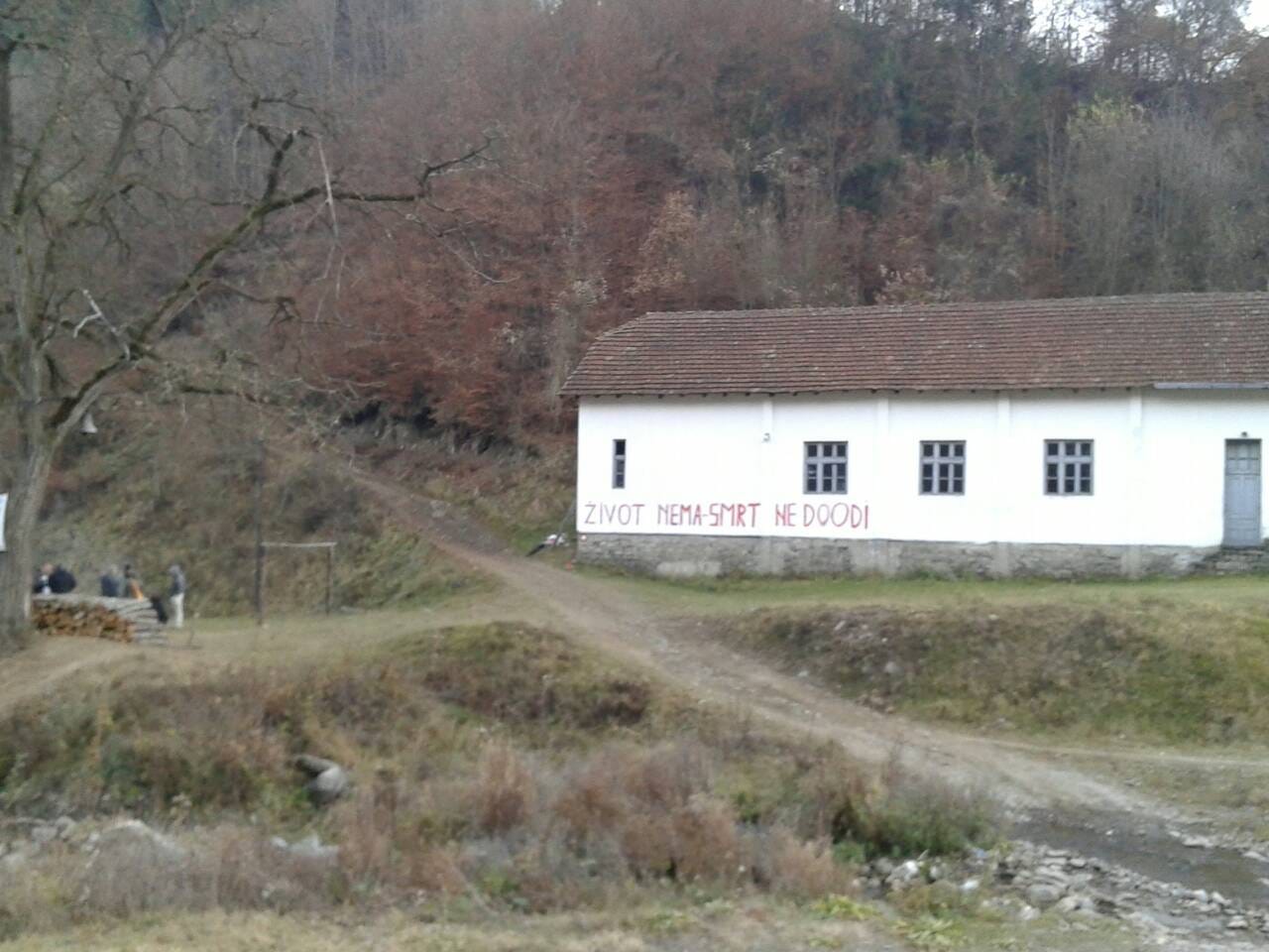 Primetne su i nove parole u selu koje upućuju na borbu meštana. Na sali je ispisan grafit “Život nema – smrt ne doodi” a na kući pored gradilišta postavljen je baner “Dođoše divlji, isteraši pitomi”.