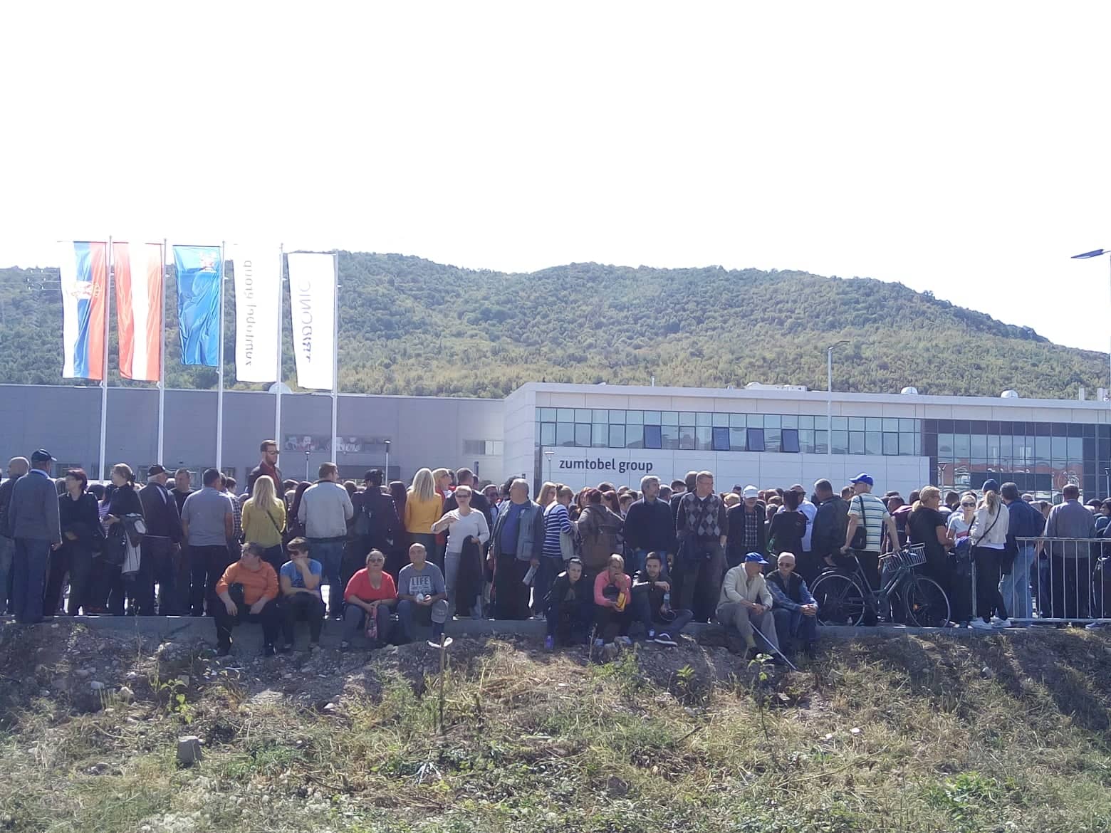 ,,Više hiljada građana okupilo se ispred fabrike Cumtobel u Nišu koju će uskoro otvoriti predsednik Srbije Aleksandar Vučić koga dočekuje i veliki natpis „Dobro došao predsedniče“. Ljudi pristižu u kolonama, a na parkingu ispred nekadašnje EI parkirani su autobusi sa tablicama iz brojnih gradova, kao i neka službena vozila opština i javnih preduzeća.,,