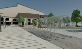 Idejno rešenje predviđa pomeranje zelenih površina i postavljanje nekoliko skulptura koje su u vlasništvu fabrike „Prvi maj“, kao i izgradnju nove bine.