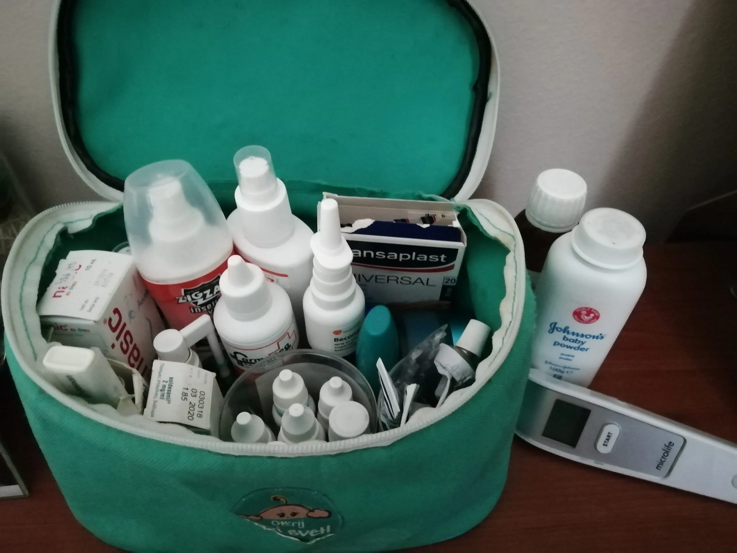 Neophodno je poneti i nešto od antipiretika, odnosno lekova za snižavanje temperature, lek za alergije, kapi za ispiranje oka i nosa, sprej za ispiranje rana, hanzaplast, toplomer i preparate za sunčanje sa zaštitnim faktorima.
