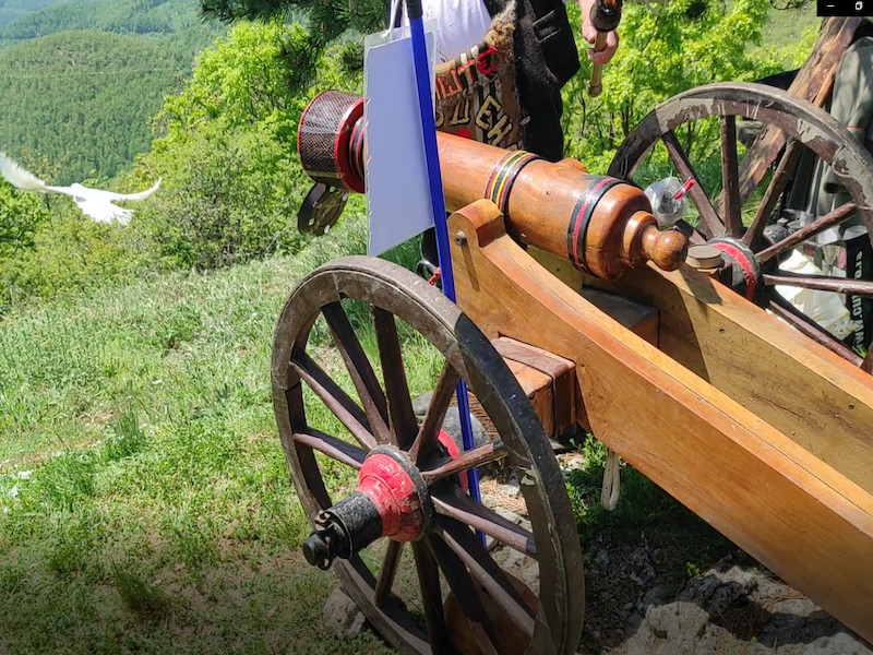 Top je isprobao “ispaljivanjem plotuna” na dva načina i oba puta je uspešno završeno „dejstvo“, prvi put je iz topa simbolično i bezbedno izleteo beli golub, a drugi put su “ispaljene” konfete.