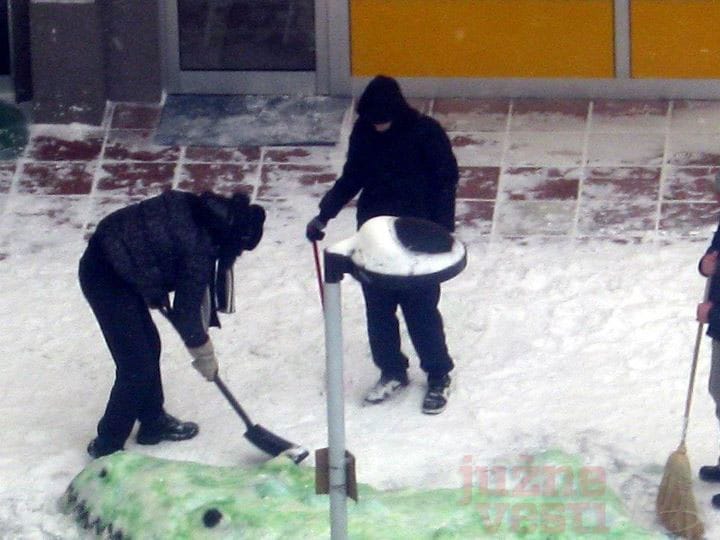 Grupa kreativnih momaka napravila je fantastičnu snežnu figuru u niškom naselju Duvanište.