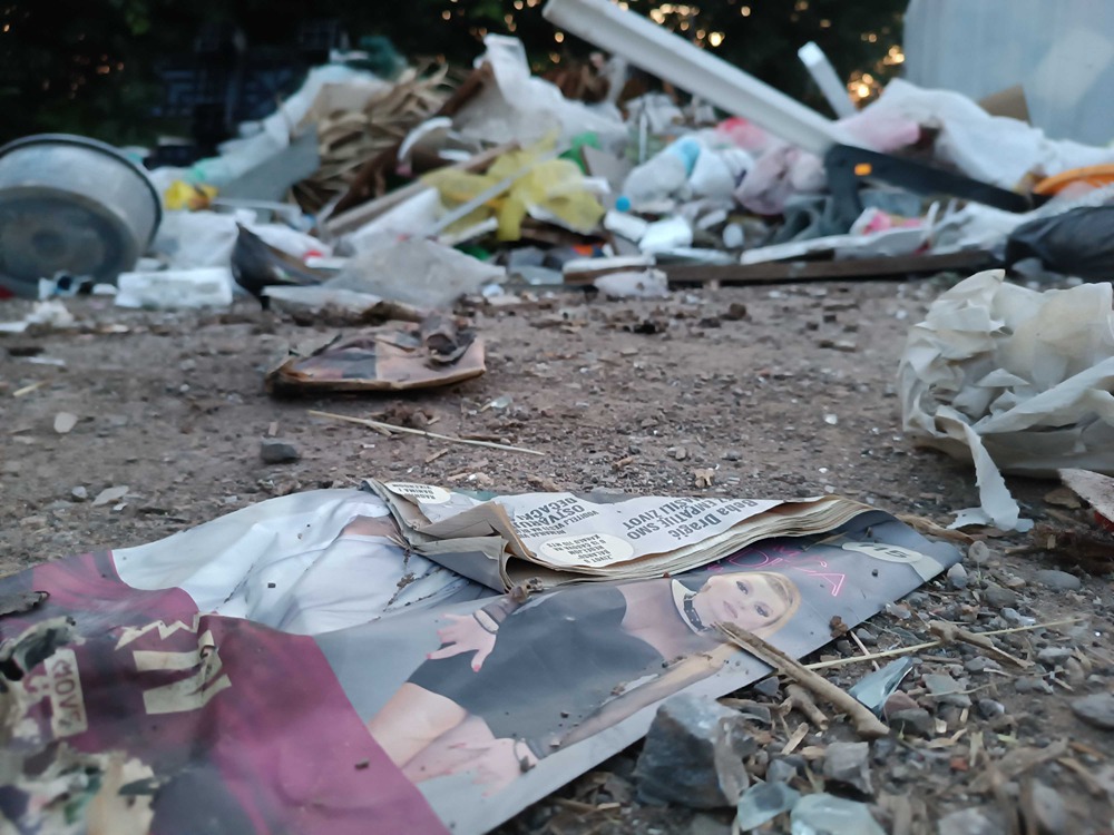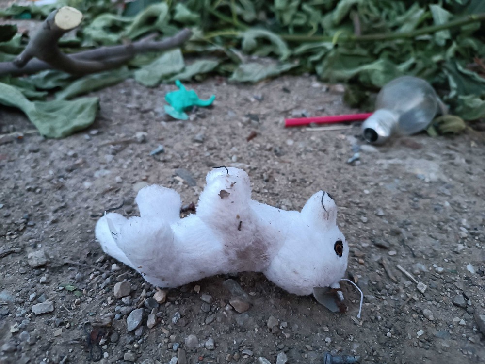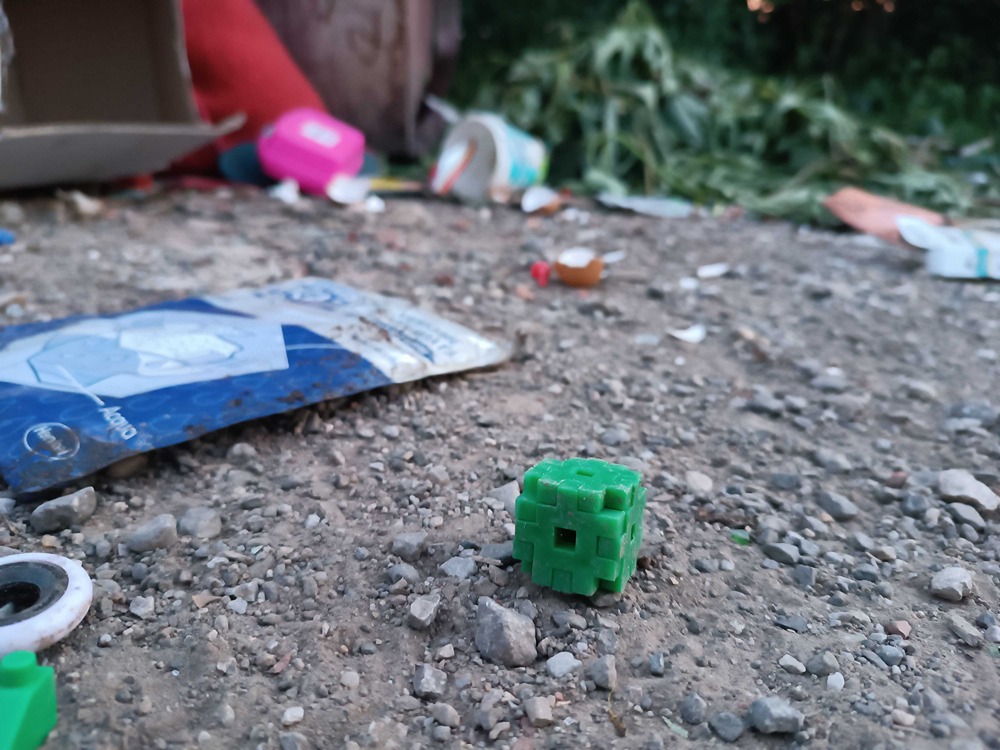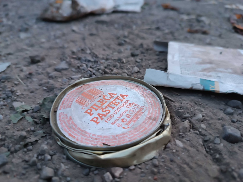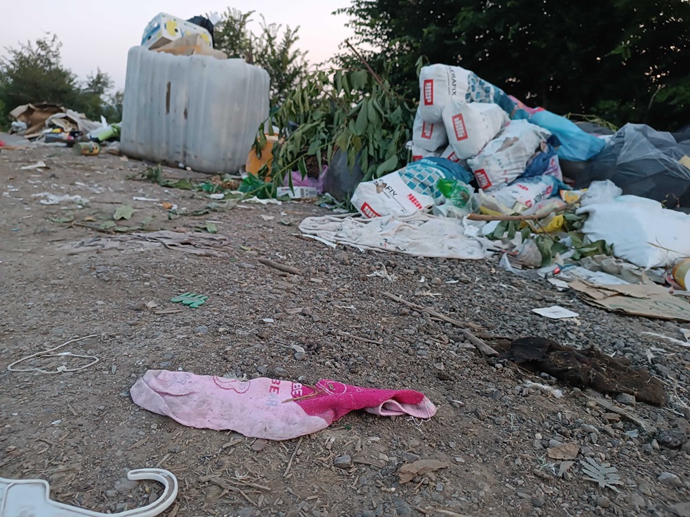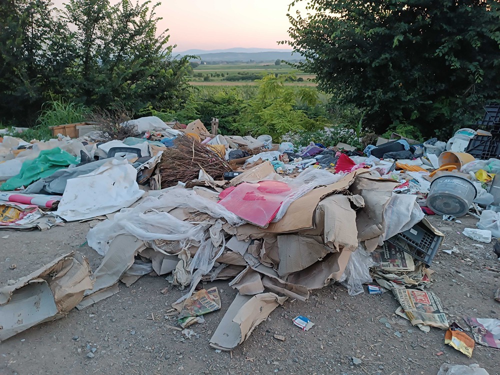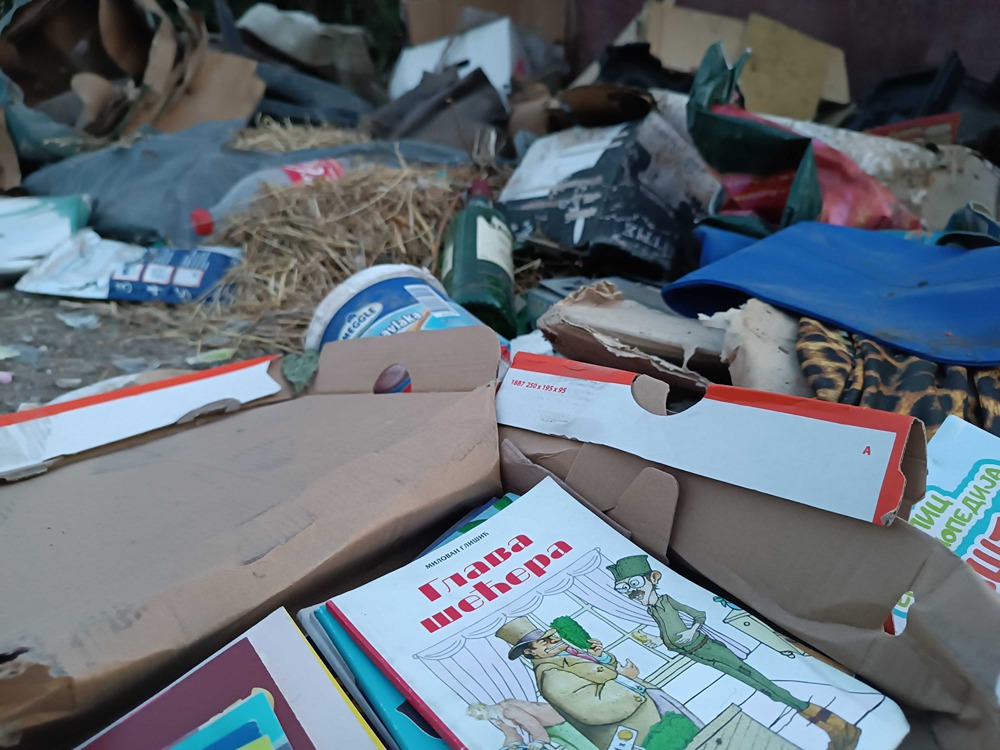 Postavljen je jedan kontejner, koji je prepun i u njemu su gajbe, stolarija, saksije i drugo, a oko njega stare ambalaže od viskija, pavlake i paštete, jedno ćebe, činije i jedna guma.Tu su i šut, konzerve, limenke, razna obuća, žuta štampa, lavabo, kauč i lego kocke. Nedaleko odatle su i dečije čarape, slama, posečene grane i plišane igračke.