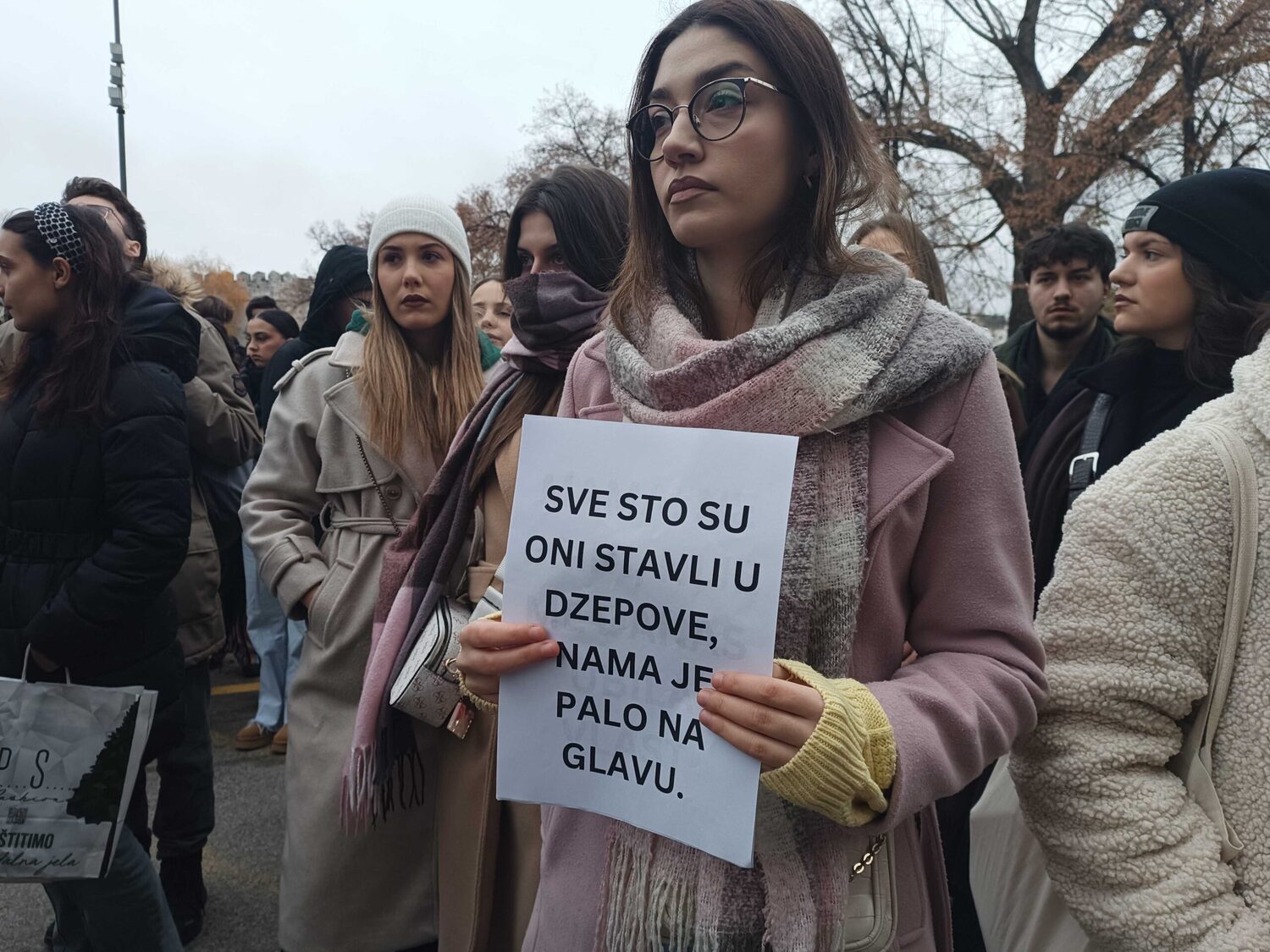 “Sve što su oni stavili u džepove, nama je palo na glavu”, “Protest je ispit”, “Batinaši u ime vlasti”, “Krvave su vam ruke” i “Gladni pravde” – neki su od natpisa na transparentima koje su studenti nosili.Ispred zgrade Univerziteta su pročitali tri zahteva – da se objavi dokumentacija o rekonstrukciji nadstrešnice u Novom Sadu, da se procesuiraju odgovorni i da se snosi politička odgovornost. Zahtevaju i da se niška akademska zajednica oglasi i stane uz njih.
