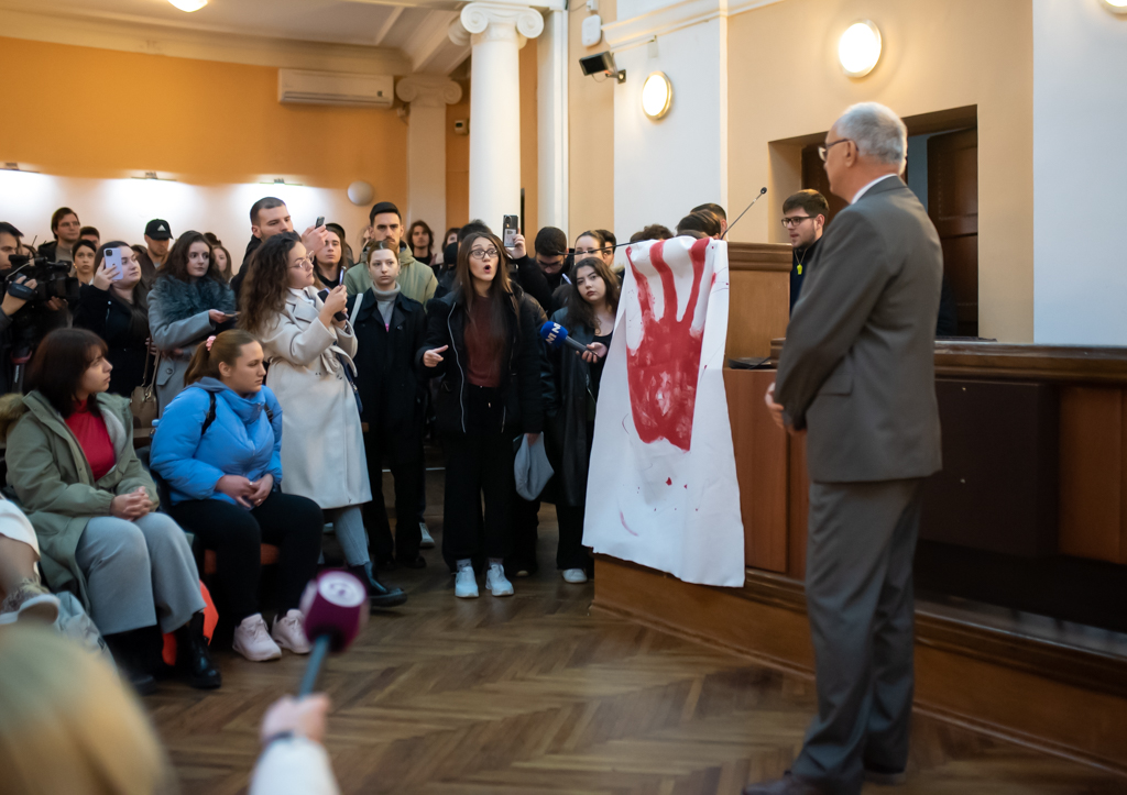 Tvrdi i da nije ni video zahtev da se akademska zajednica oglasi, koji su studenti, kako kažu, poslali Univerzitetu mejlom još u petak prošle nedelje. Za ostala tri zahteva, kako navodi, Univerzitet nije nadležan.Što se mene tiče, kao profesora prava, oduvek sam poštovao zalaganje za pravnu državu i vladavinu prava, da su svi jednaki pred zakonom, uključujući i studente. Ovo je vaš Univerzitet, primljeni ste da uđete bez problema. Proslediću dalje vaše zahteve, ali organi koji sprovode prava su tužilaštvo, pravosuđe itd. Pretpostavka nevinosti ne sme da se sruši jer ćemo onda ući u drugi problem, gde nećemo moći da dođemo do pravde – rekao je on.