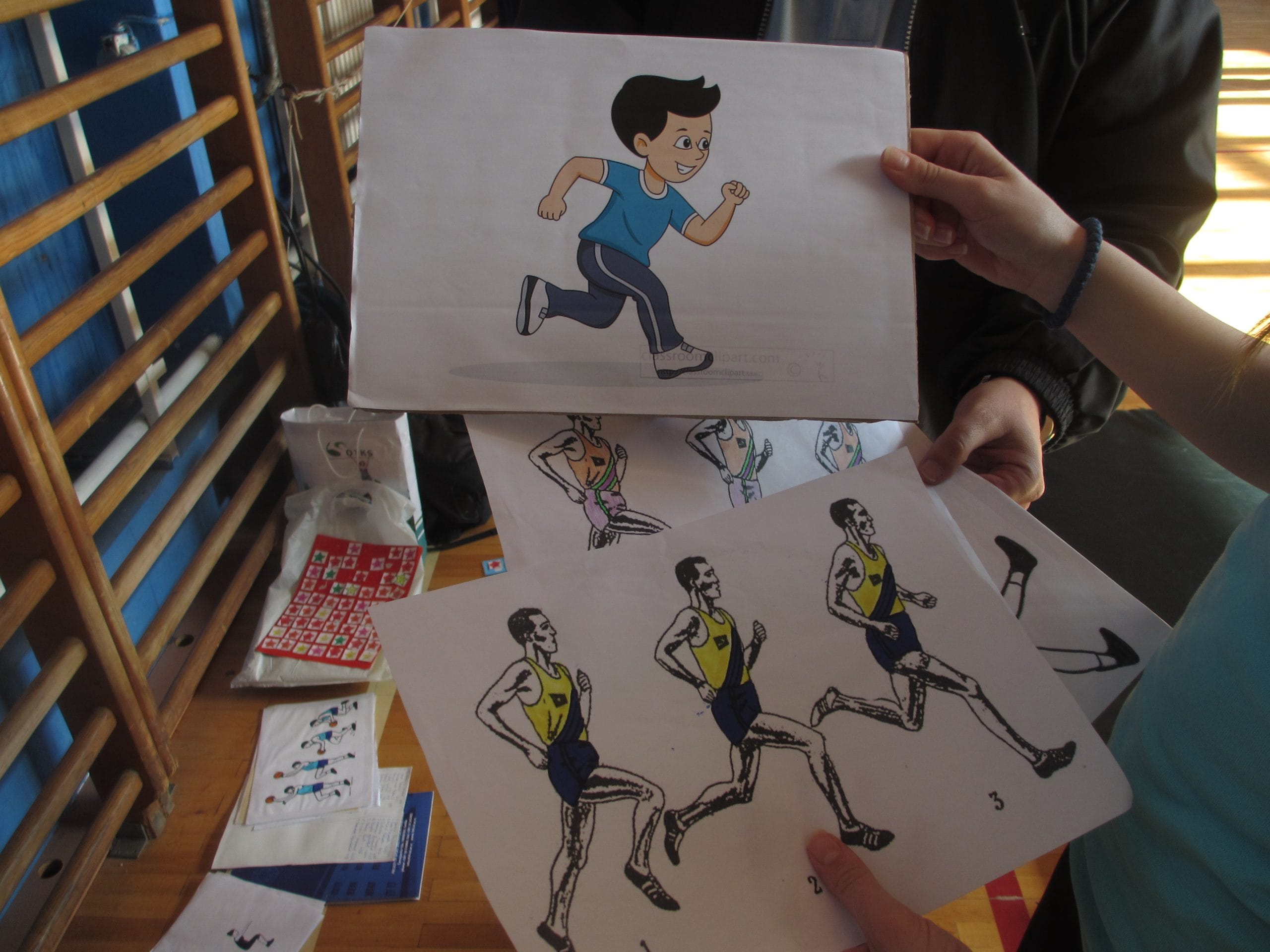 Svako dete na času fizičkog dobija instrukcije i pomoć jednog ili dvoje studenata. Oni svom „đaku“ daju zadatak – opisuju vežbu koju treba da uradi i pokazuju mu crtež koji to demonstrira.