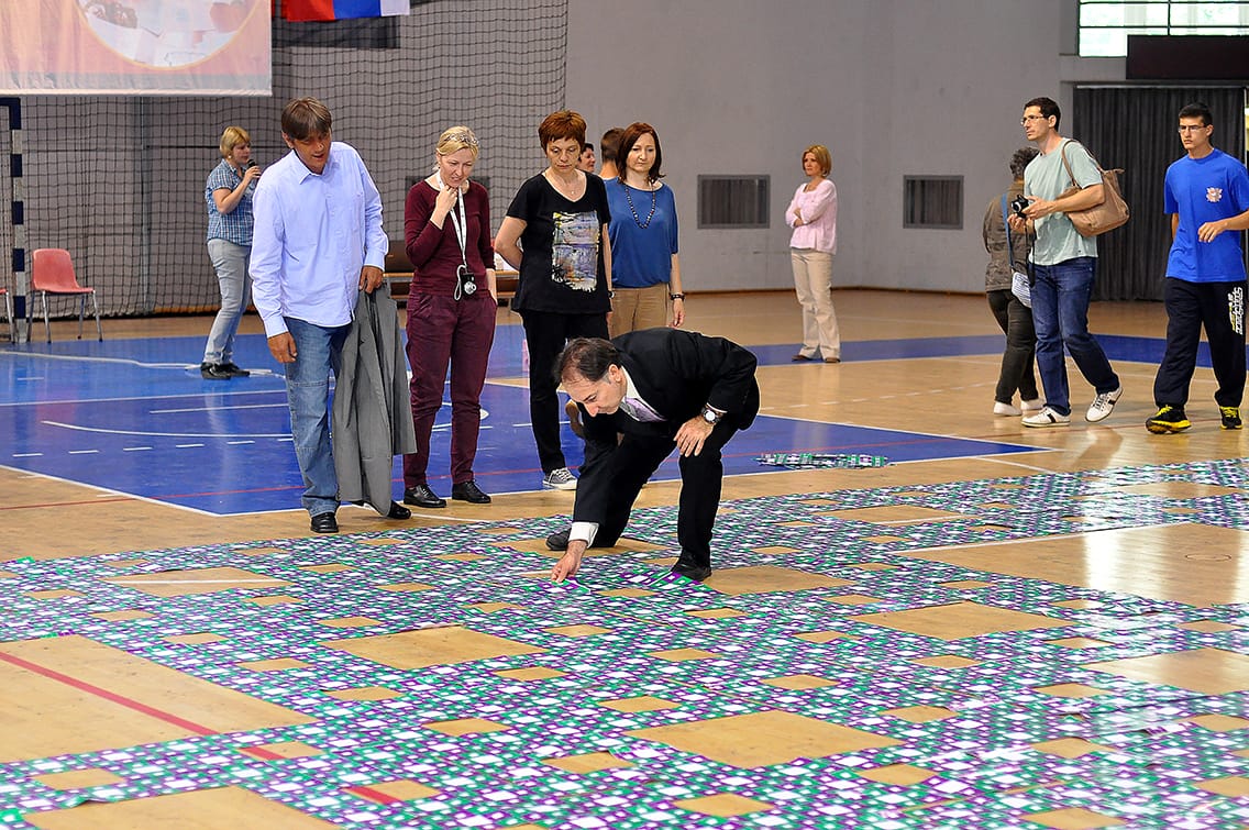 Đacima iz 32 države koji zajedno prave „Tepih Sjerpinskog“ dužine 43 metra, pomogli su vršnjaci iz Srbije tako što su u niškoj hali „Čair“ napravili čak osminu ovog matematičkog fraktala.