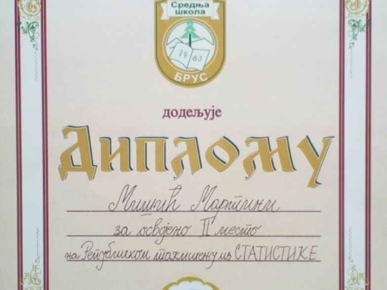 Učenica četvrtog razreda Pravno-poslovne škole Niš Martina Mišić zauzela je drugo mesto na Republičkom takmičenju iz statistike koje je održano 23. i 24. aprila u srednjoj školi u Brusu.