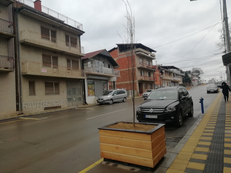 Velike saksije postavljene su uz ivice kolovoza, a direktor JKP Komrad Zoran Dimitrijević kaže za Južne vesti da su u njima posađene sadnice graba.