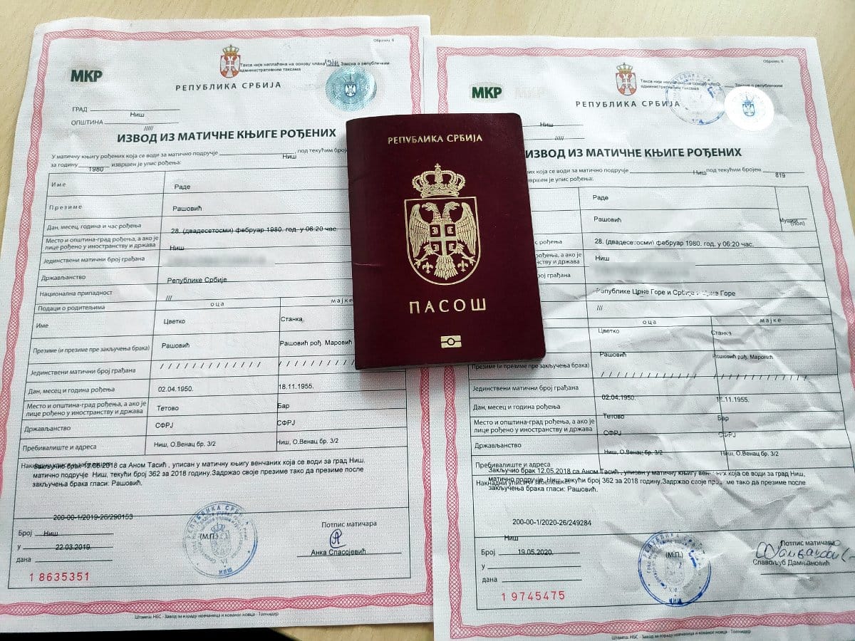 Pasoš i ličnu kartu koji su još važeći dobio je kao državljanin Srbije, što kaže da je od rođenja, a tako piše i u zvaničnim dokumentima.