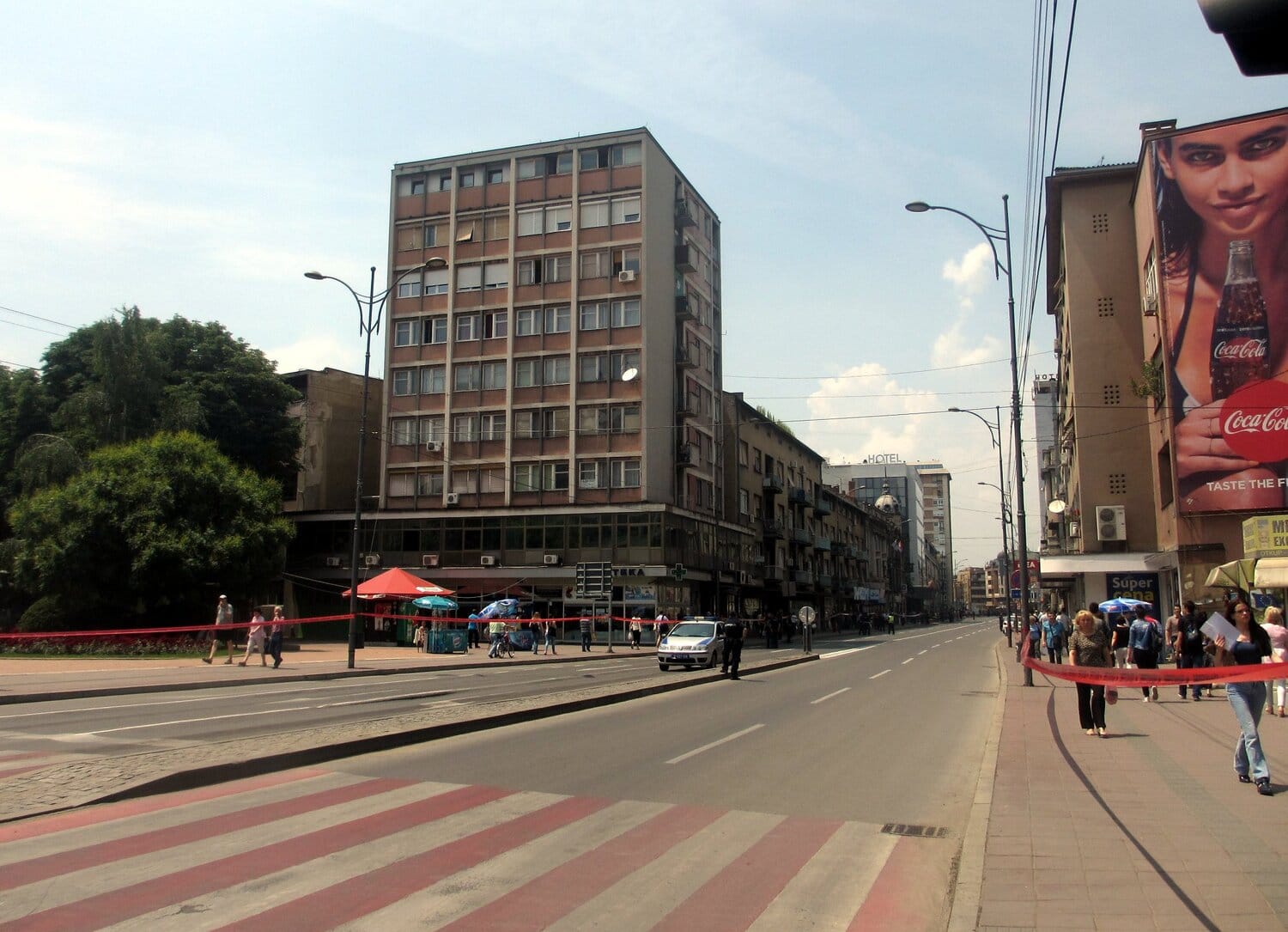 Duž Voždove od Pozorišta do centra su postavljene trake da pešaci ne bi izlazili na kolovoz, jer bi tu policajci trebalo da vežbaju za proslavu u nedelju.