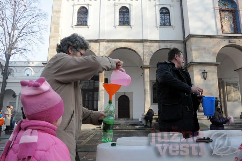 U burad sa pijaćom osvećenom vodom u dvorištu Sabornog hrama u Nišu, vernici ubacuju i novac, što predstavlja opasnost po zdravlje, smatraju stručnjaci.