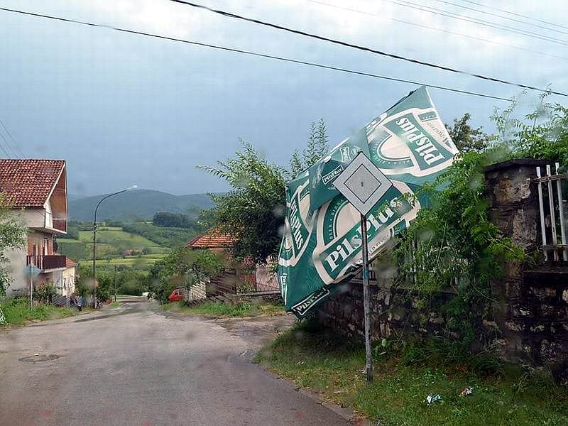 Vetar je lomio stabla, a sa krovova kuća leteli su crepovi i nastrešnice, kao i tende sa lokala. U naselju Saraj vetar je sa terase jednog stana odneo i satelitsku antenu.
