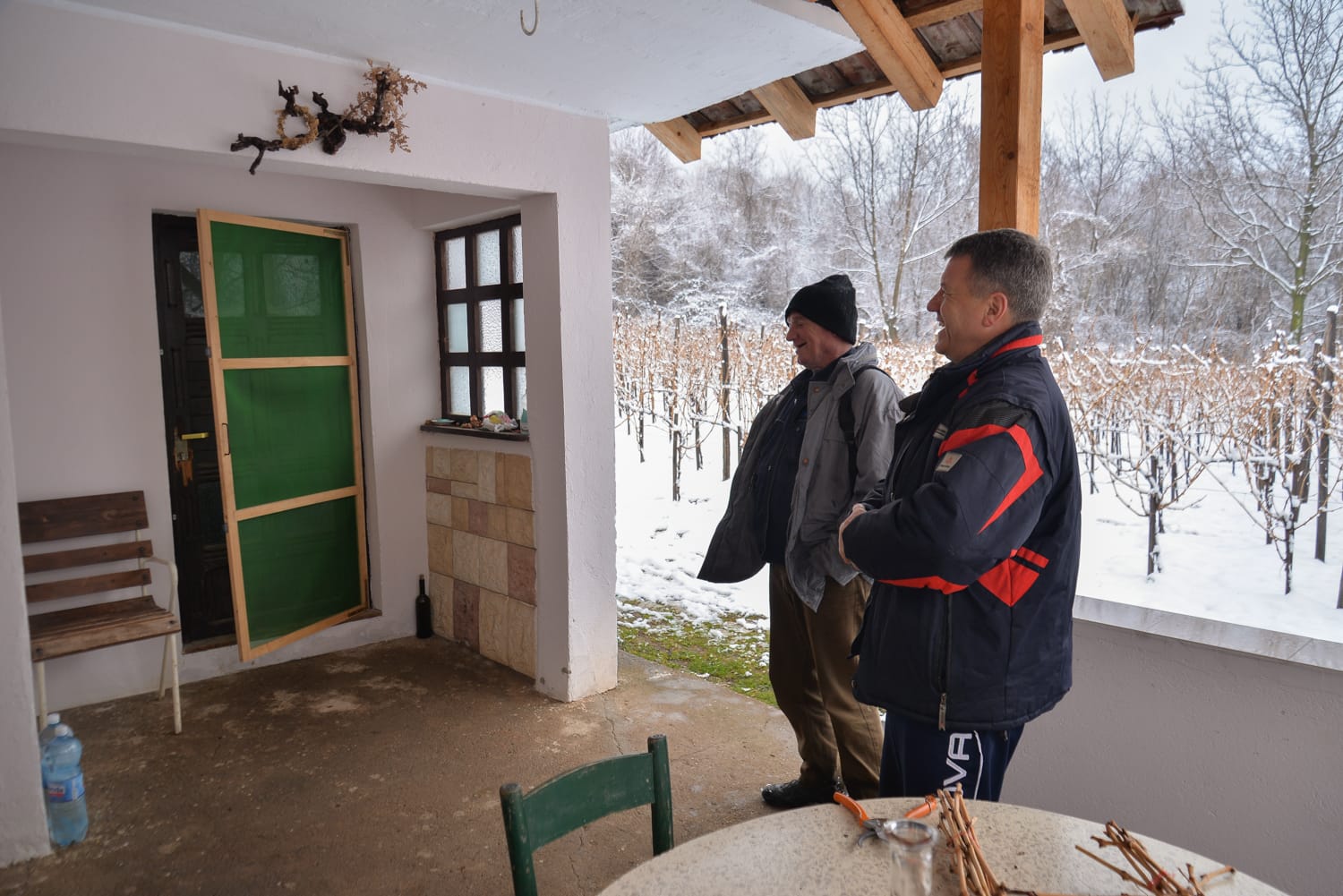 Po tradiciji, i Dinić je danas izašao u svoj vinograd od petnaestak ari. U vinograd je doneo i posluženje, a komšije koje su krenule u zarezoju, ili oni koji nemaju svoje vinograde, ali poštuju običaje vezane za Svetog Trifuna, rado navraćaju.
