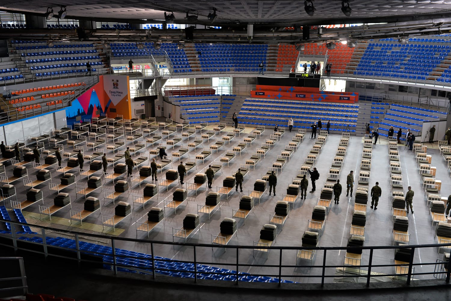 Više od 500 kreveta postavljeno je u Sportskom centru „Čair“ u Nišu i salama osnovnih škola „Duško Radović“ i „Mika Antić“, a u ovim prostorima boraviće zaraženi od korona virusa sa blažom kliničkom slikom. Ministar odbrane Aleksandar Vulin kaže da će biti postavljeni paravani, obezbeđeni svi uslovi za život, ali napominje da ove improvizovane bolnice nisu hoteli, već prostor za lečenje, pa će u njima vladati vojnička disciplina.