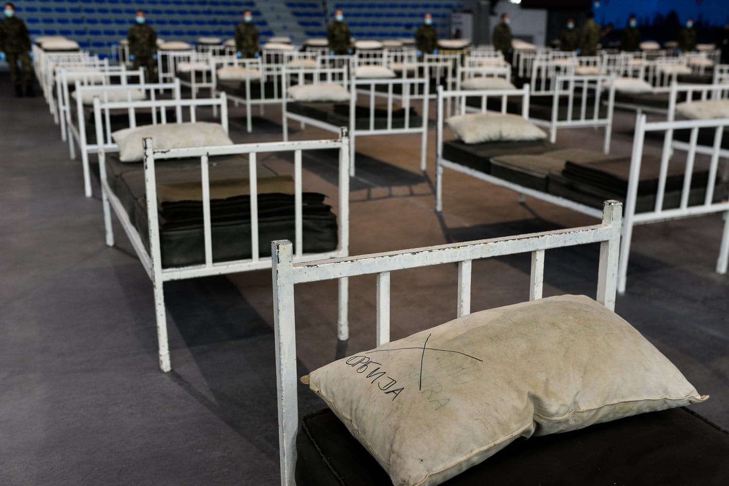 Kako drzavu nije sramota da za ovo izdvoji vojnicke zardjale krevete i upovracane jastuke? Kako jedna drzava koja gradi fabrike svuda okolo, koja ima Beograd na vodi, gde svemoguci predsednik samo namigne i stignu respiratori, mora da zove vojsku u pomoc? Zasto umesto ovih hladnih sportskih hala, pacijenti nisu u Beogradu na vodi, hotelima u Nisu i Valjevu?