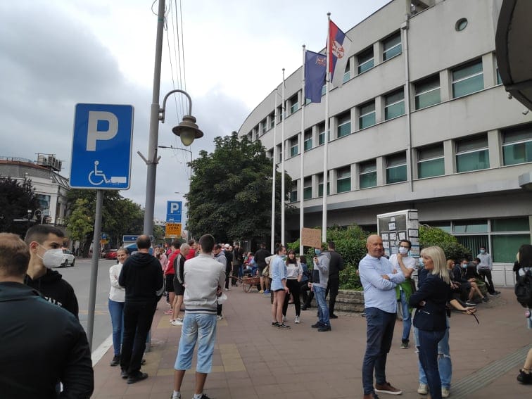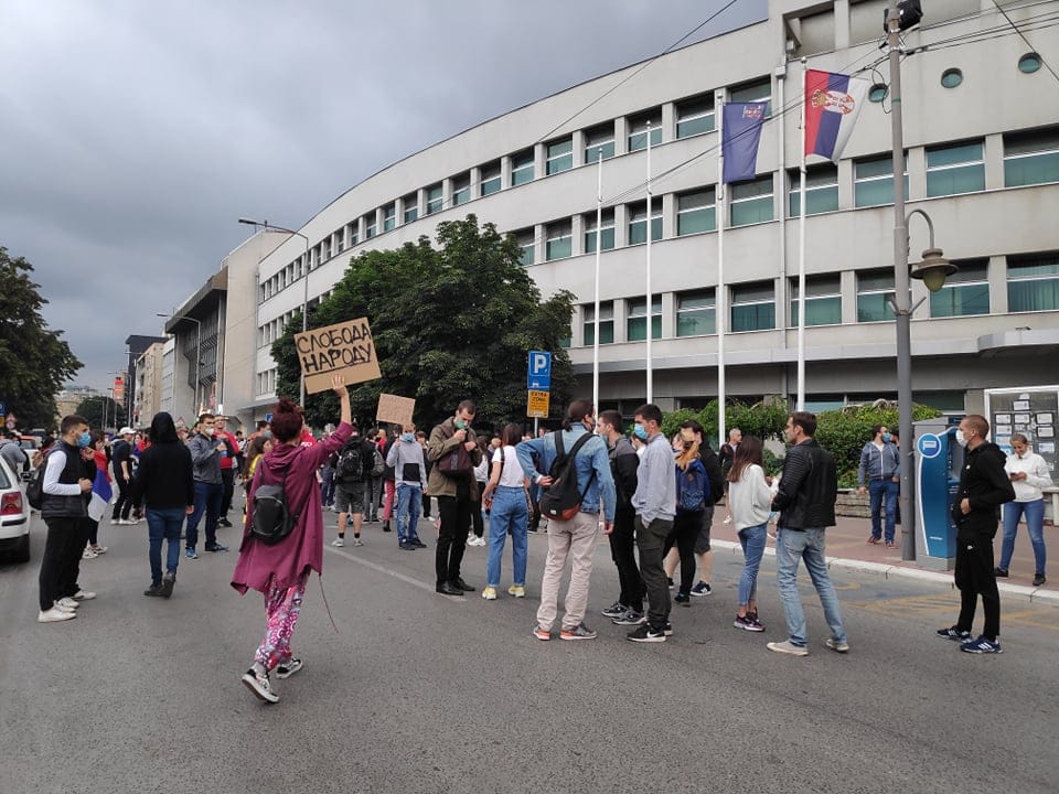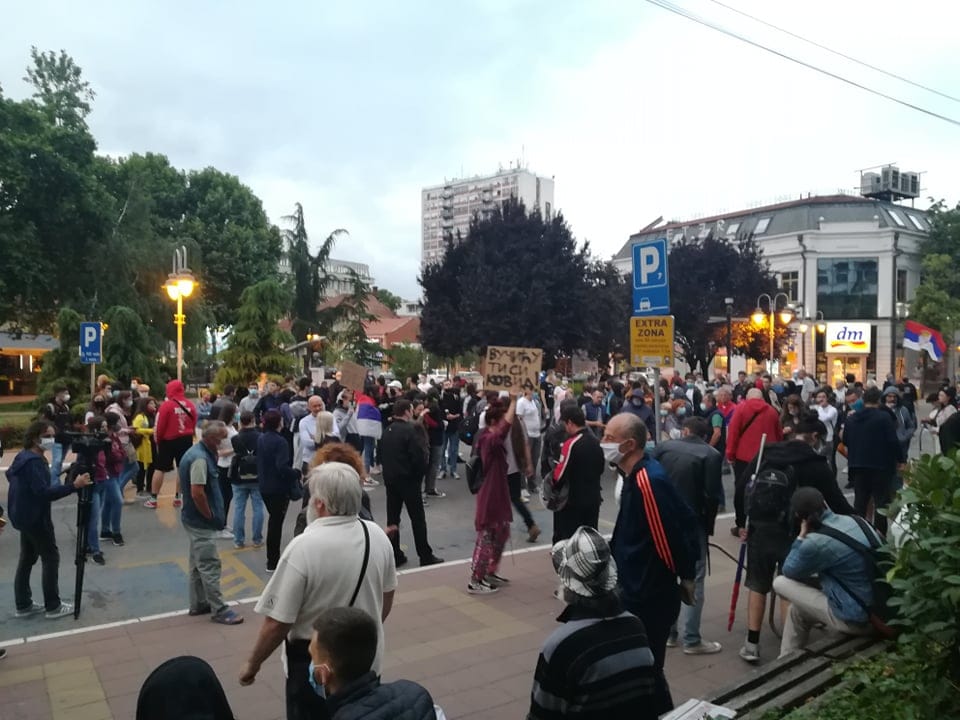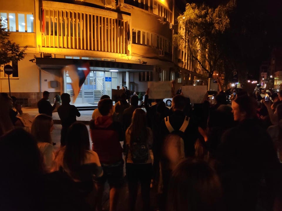 Okupljeni na protestu zastali su kod zgrade Suda i pozvali građane na miran protest kod policije i da ne žele nerede.#Niš #protest2020 pic.twitter.com/yz6U1K5ICU