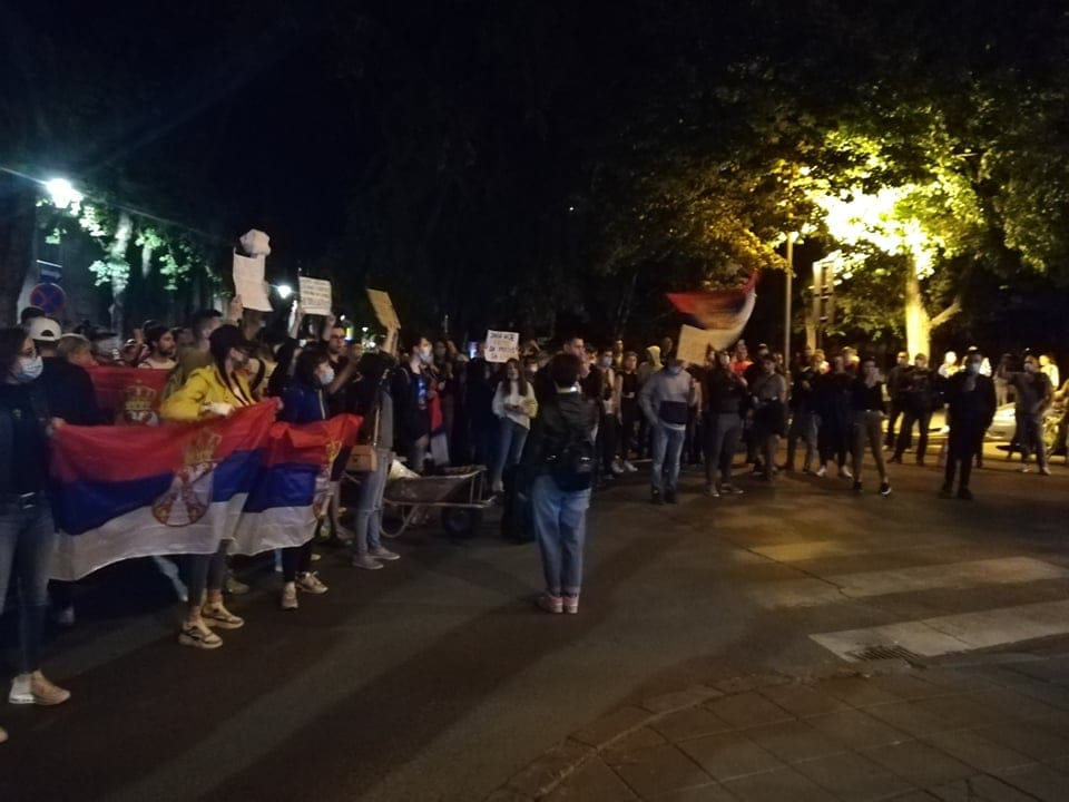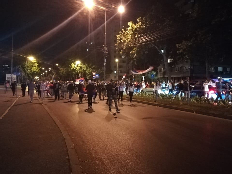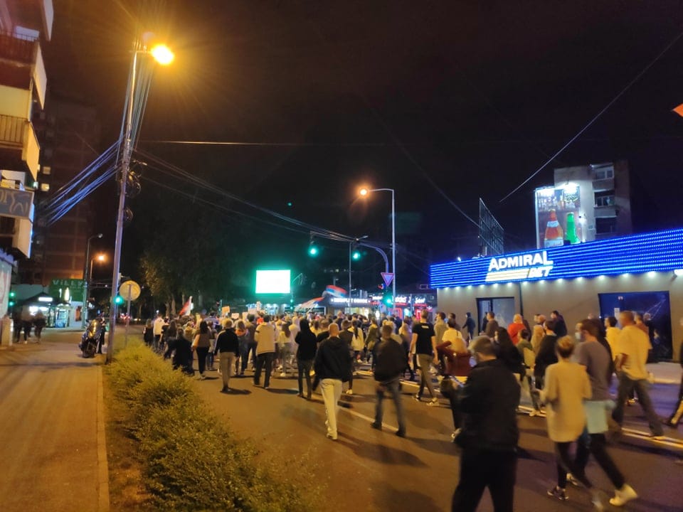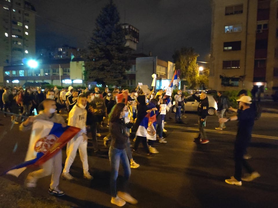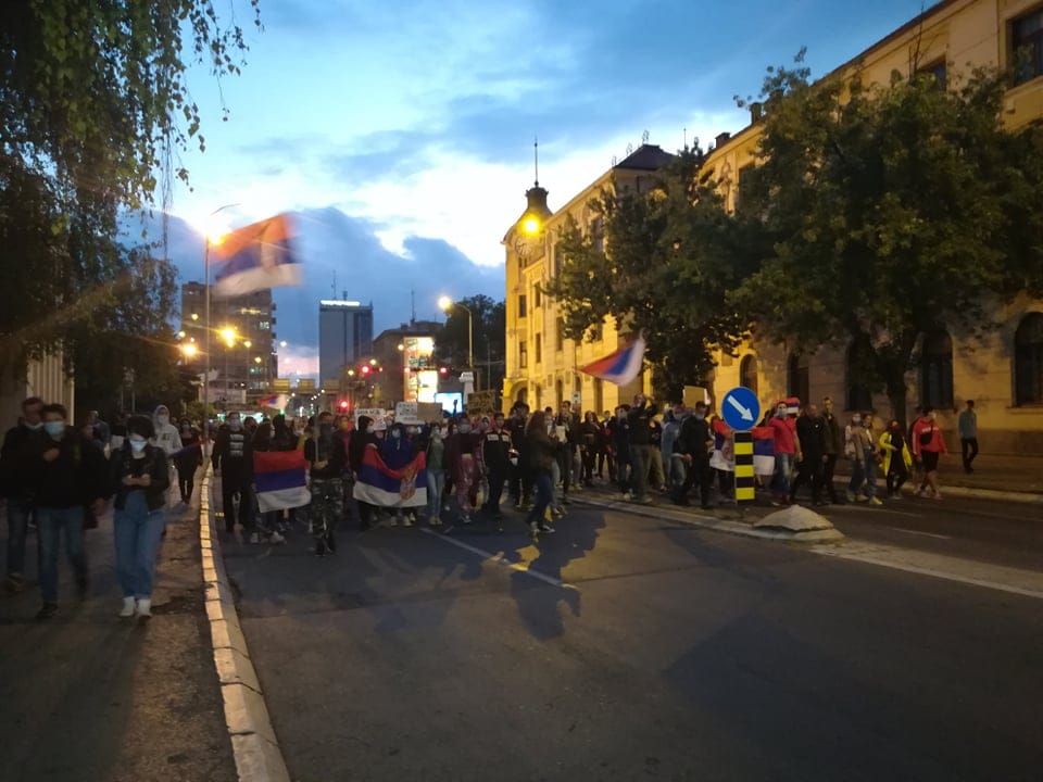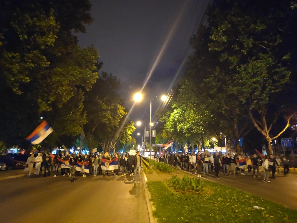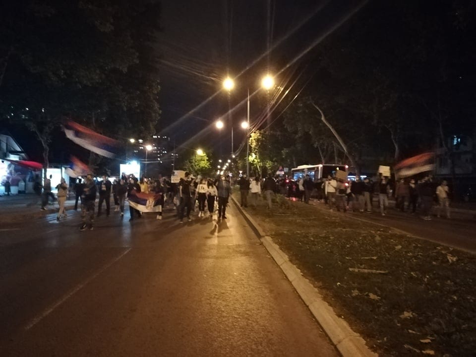 21:28 – Okupljeni su trenutno na Bulevaru Nemanjića, u blizini raskrsnice koja ih je prethodno i razdvajala, jer je levo od njih sedište SNS-a. Grupa se ovoga puta nije odvojila i svi su skrenuli u Ulicu vojvode Mišića.