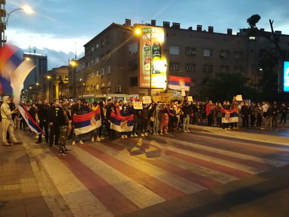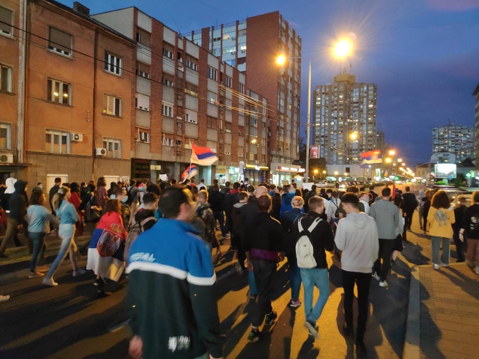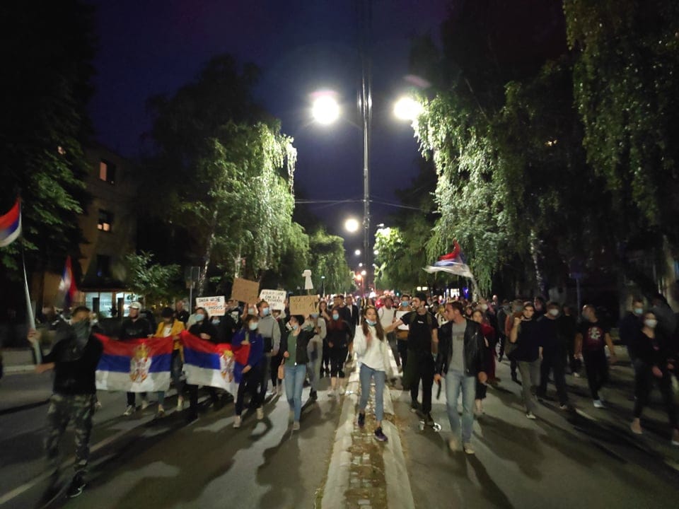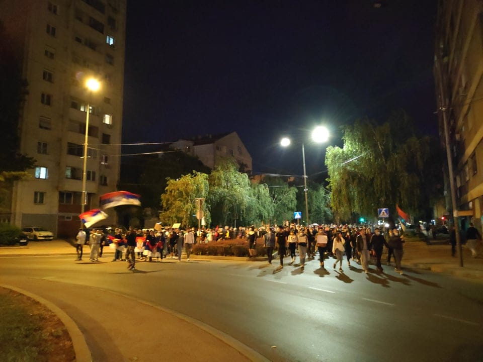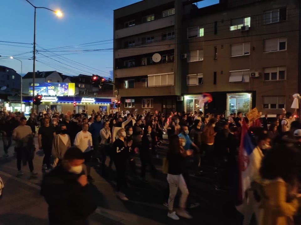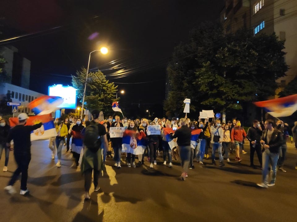 21:28 – Okupljeni su trenutno na Bulevaru Nemanjića, u blizini raskrsnice koja ih je prethodno i razdvajala, jer je levo od njih sedište SNS-a. Grupa se ovoga puta nije odvojila i svi su skrenuli u Ulicu vojvode Mišića.