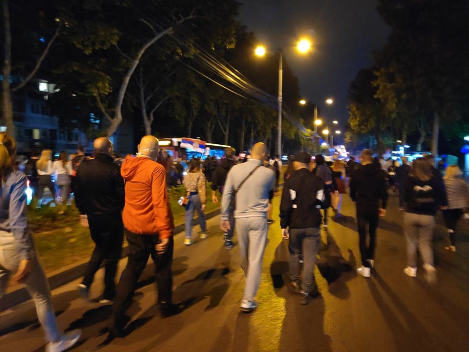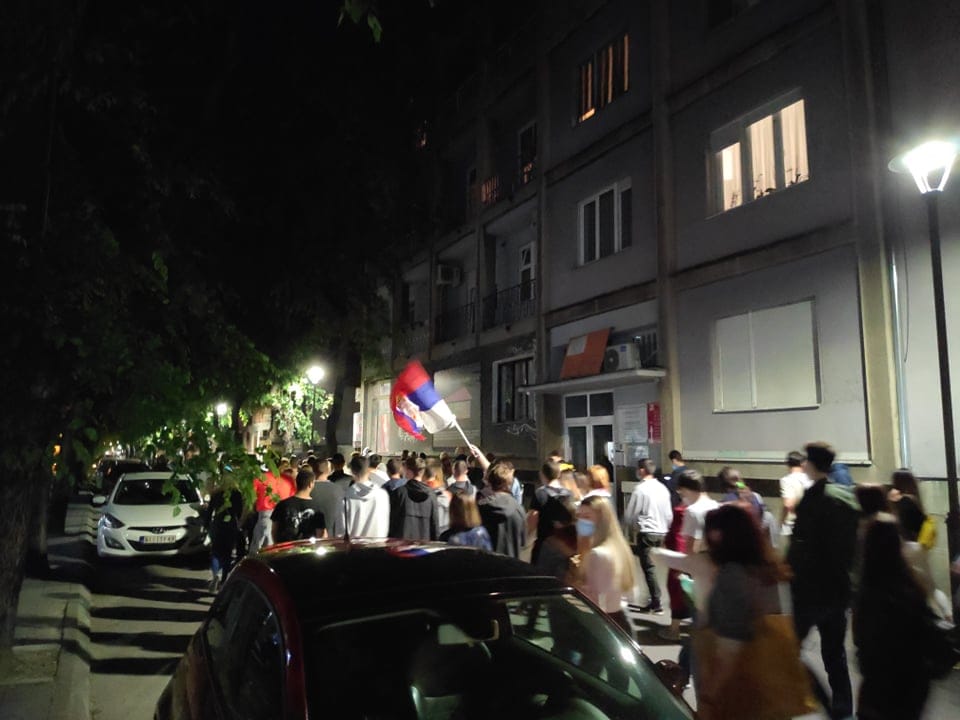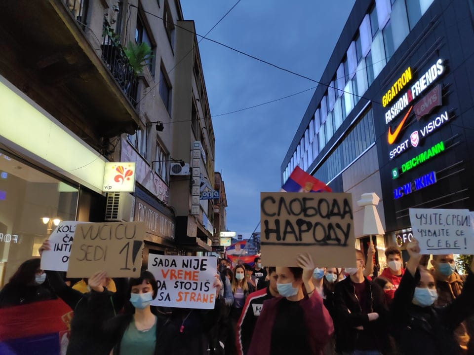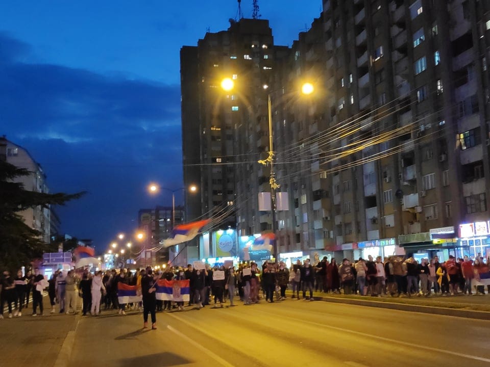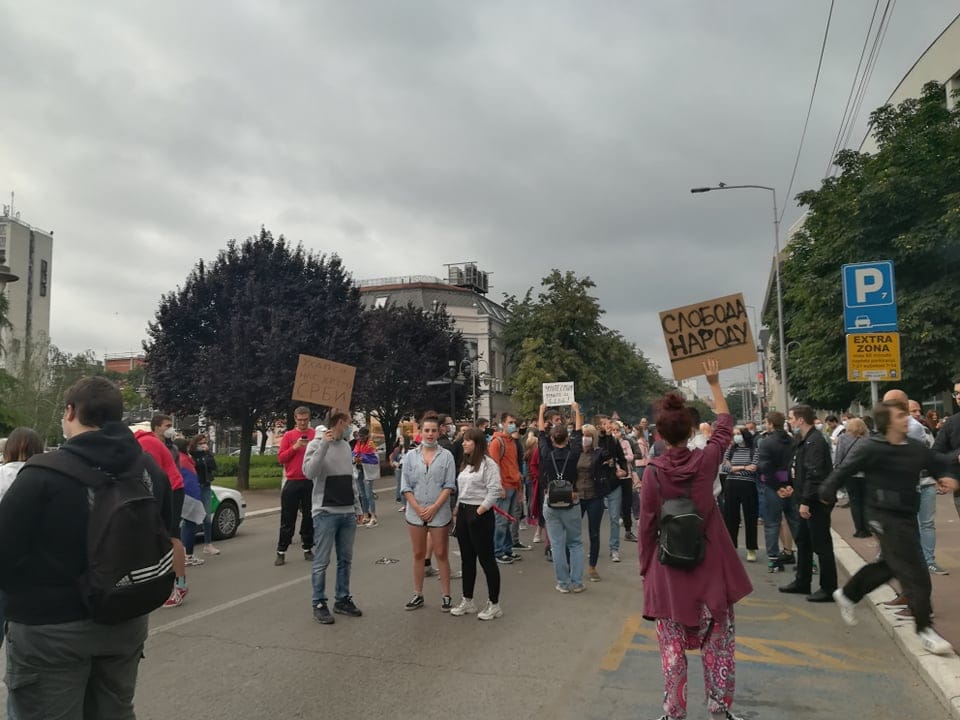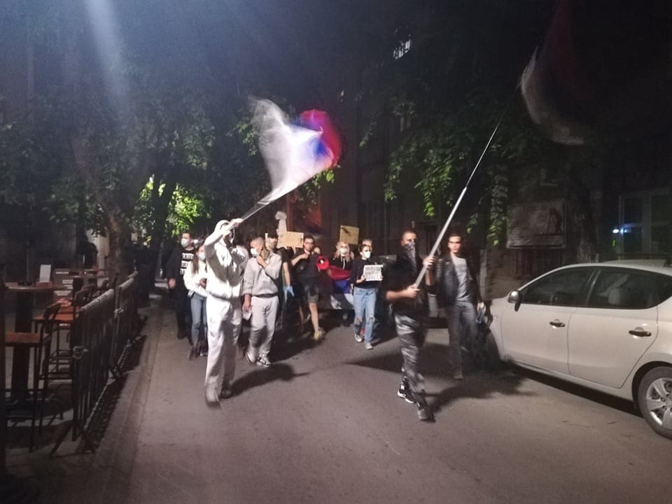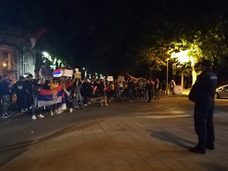 21:28 – Okupljeni su trenutno na Bulevaru Nemanjića, u blizini raskrsnice koja ih je prethodno i razdvajala, jer je levo od njih sedište SNS-a. Grupa se ovoga puta nije odvojila i svi su skrenuli u Ulicu vojvode Mišića.